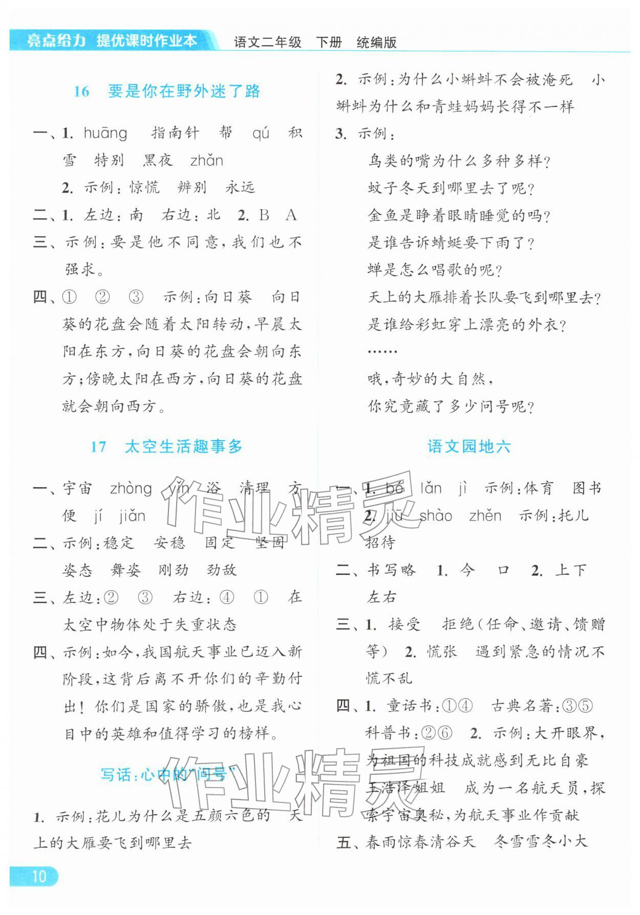 2026年亮点给力提优课时作业本二年级语文下册统编版参考答案第10页
