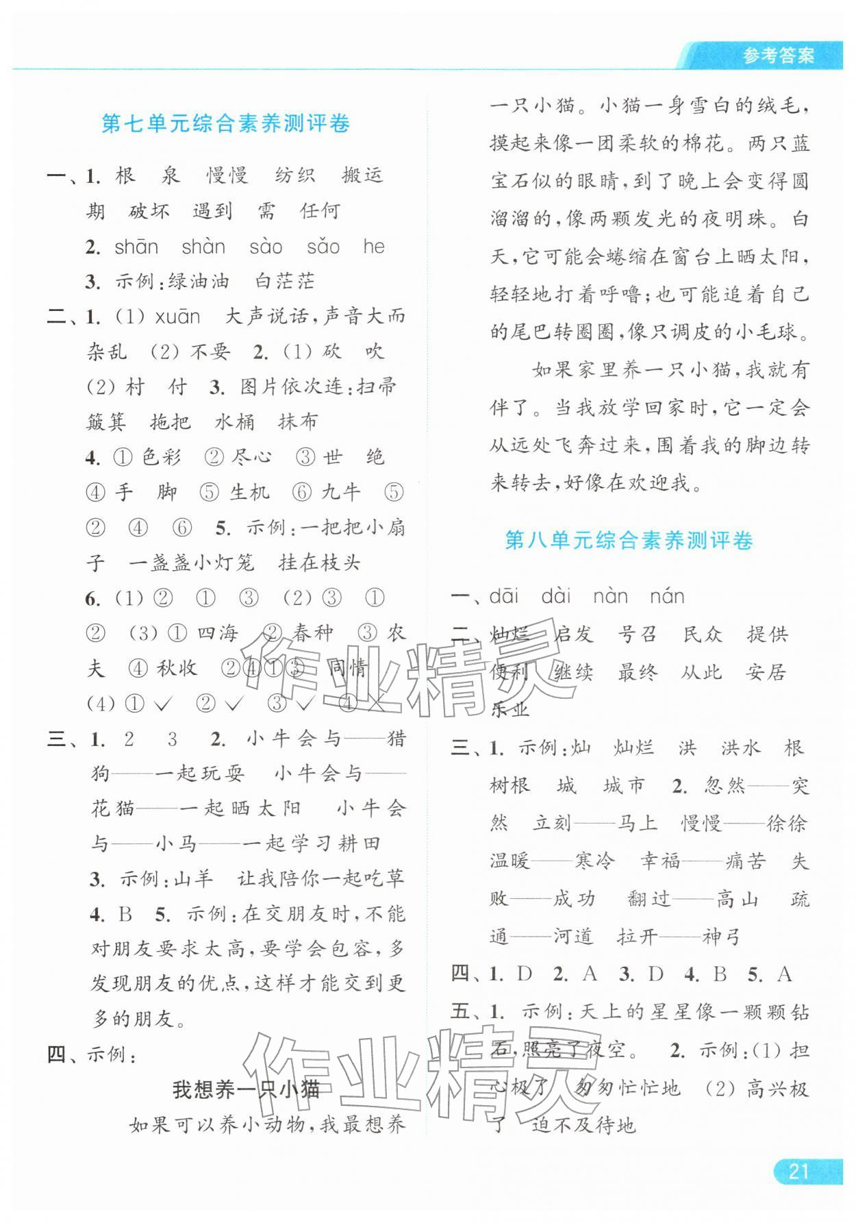 2026年亮点给力提优课时作业本二年级语文下册统编版参考答案第21页