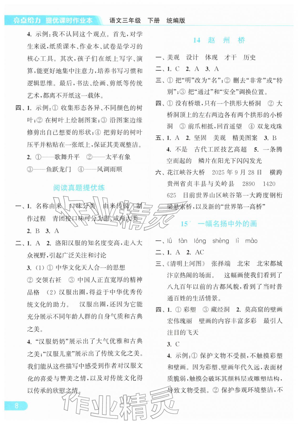 2026年亮点给力提优课时作业本三年级语文下册统编版参考答案第8页
