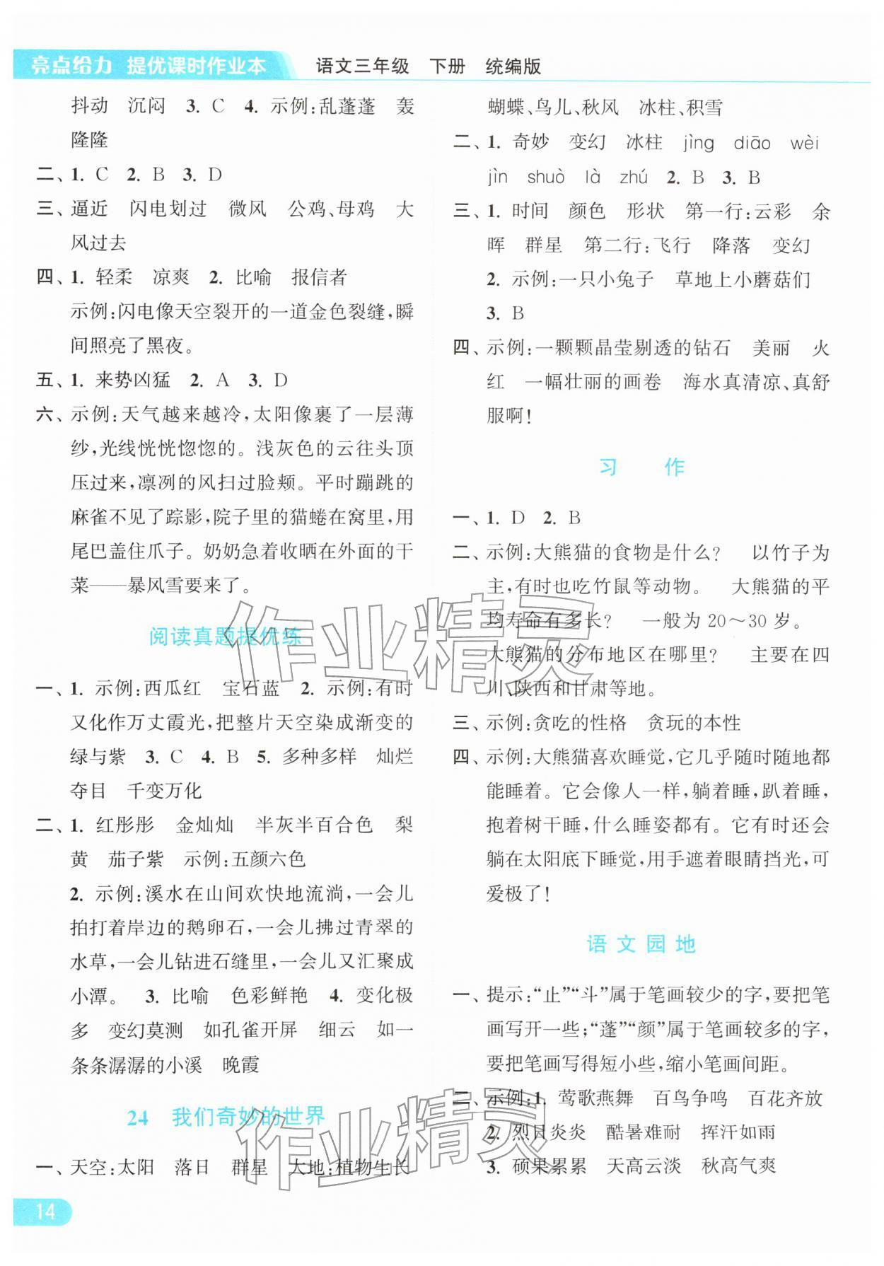 2026年亮点给力提优课时作业本三年级语文下册统编版参考答案第14页
