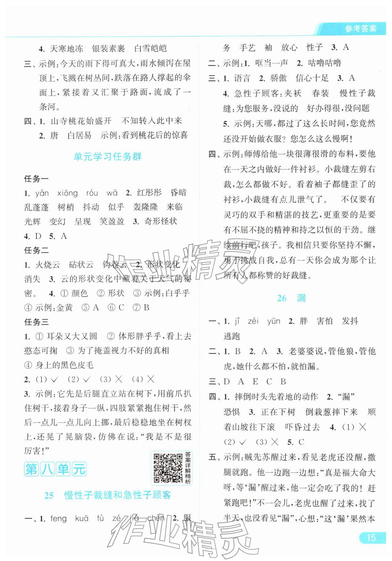 2026年亮点给力提优课时作业本三年级语文下册统编版参考答案第15页