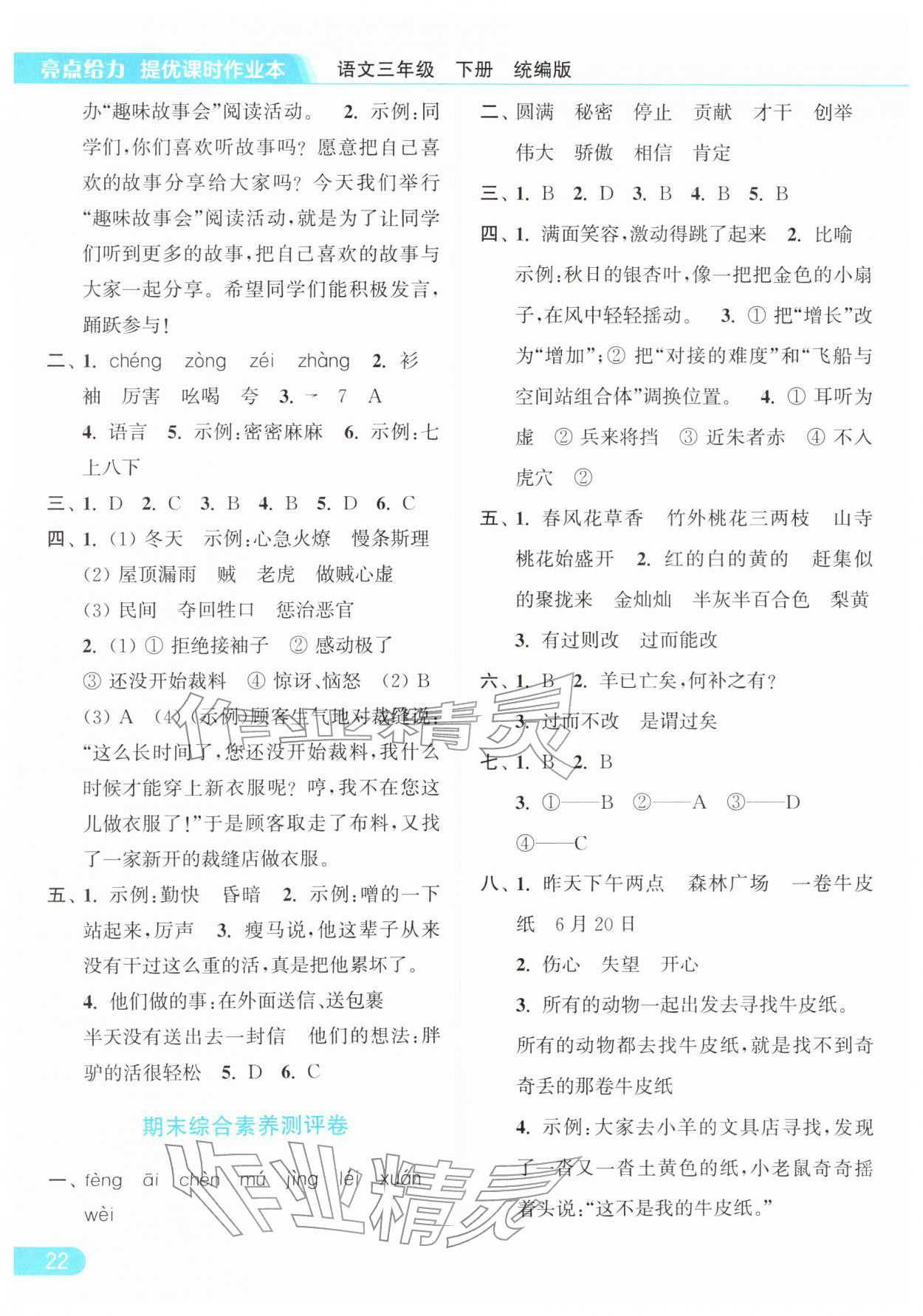2026年亮点给力提优课时作业本三年级语文下册统编版参考答案第22页