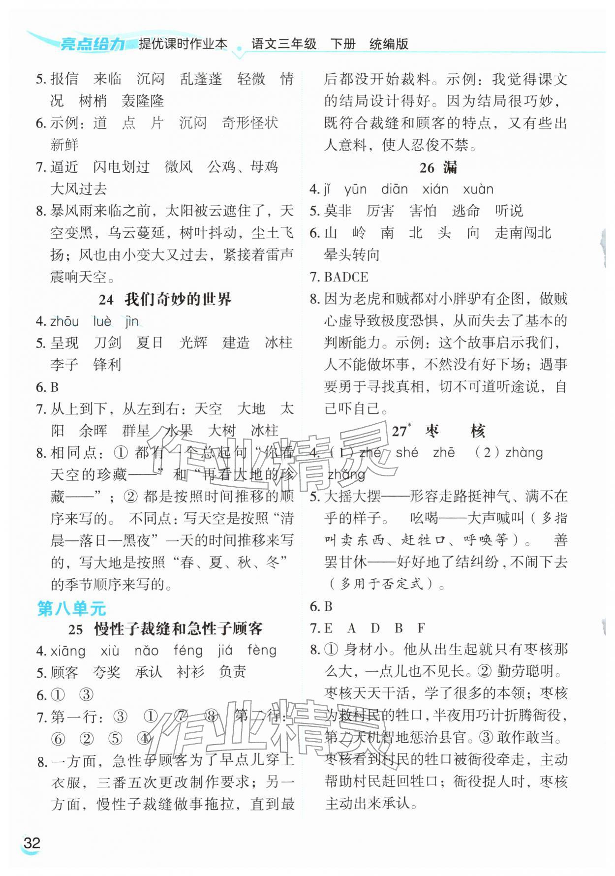 2026年亮点给力提优课时作业本三年级语文下册统编版参考答案第27页