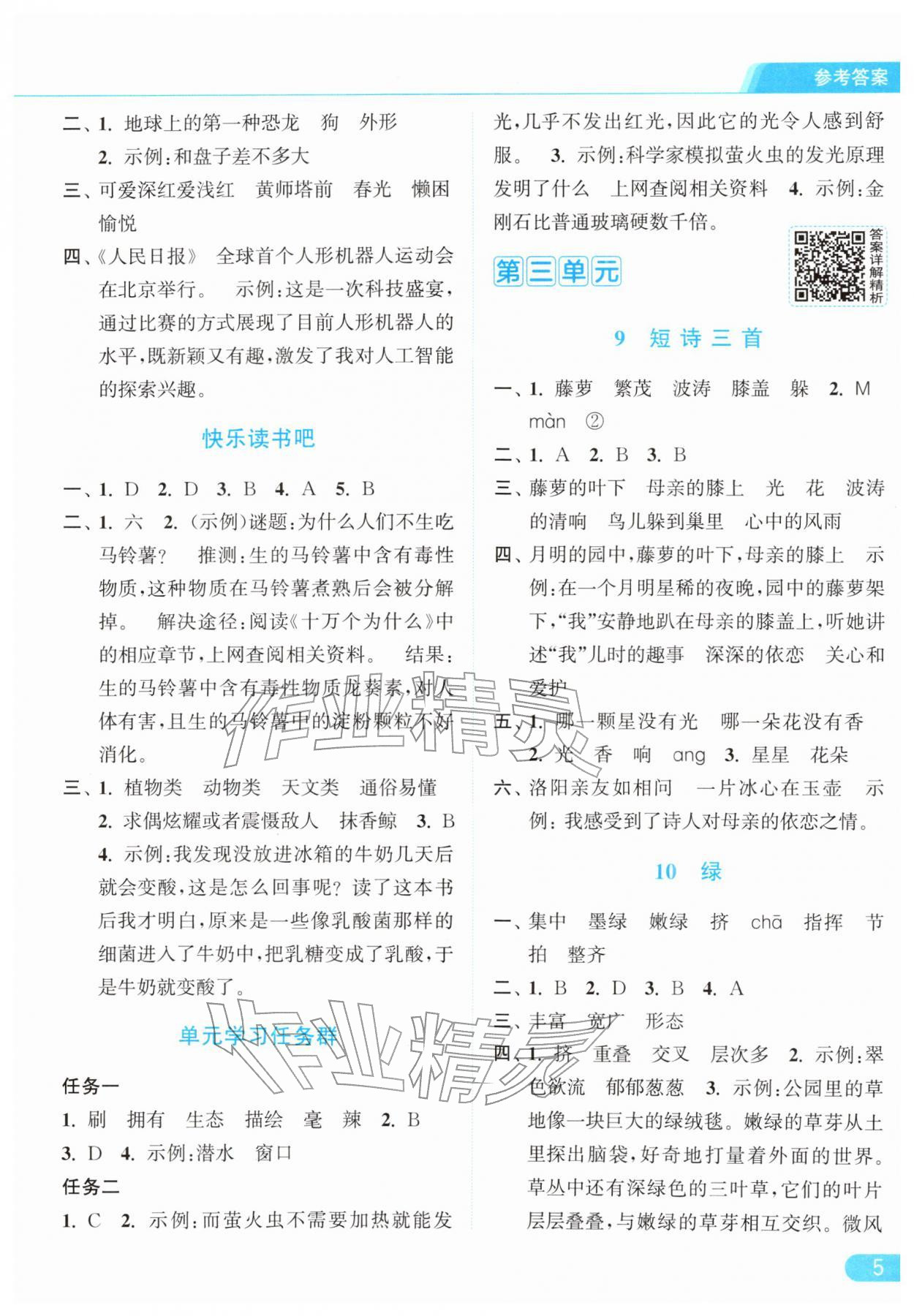 2026年亮点给力提优课时作业本四年级语文下册统编版参考答案第5页