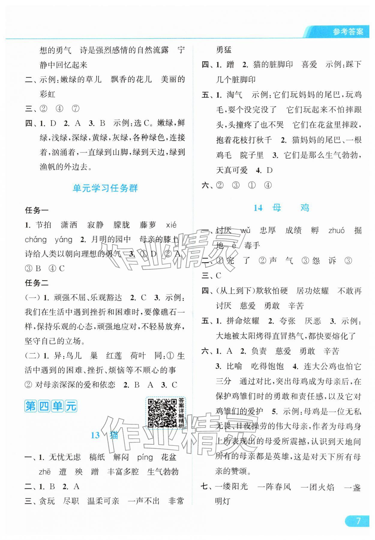 2026年亮点给力提优课时作业本四年级语文下册统编版参考答案第7页