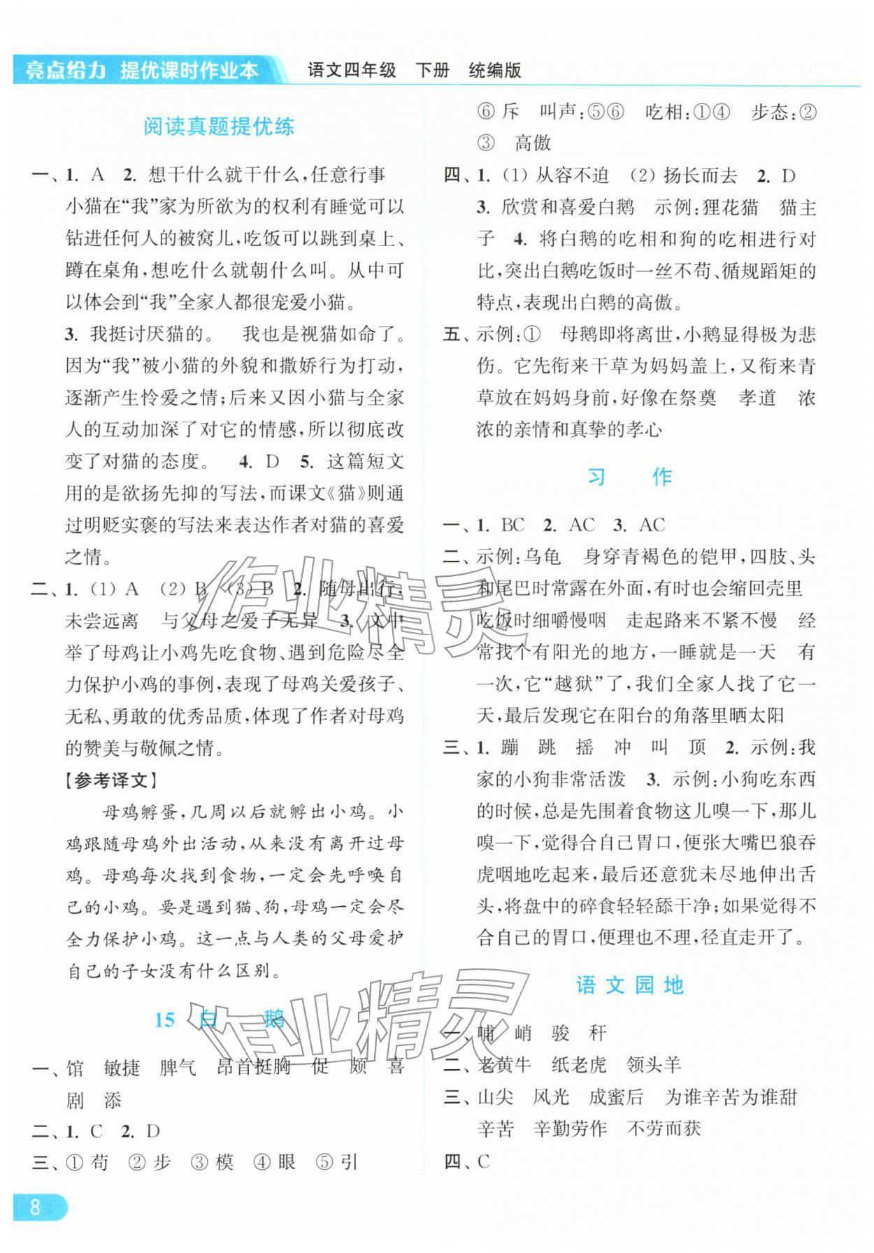 2026年亮点给力提优课时作业本四年级语文下册统编版参考答案第8页