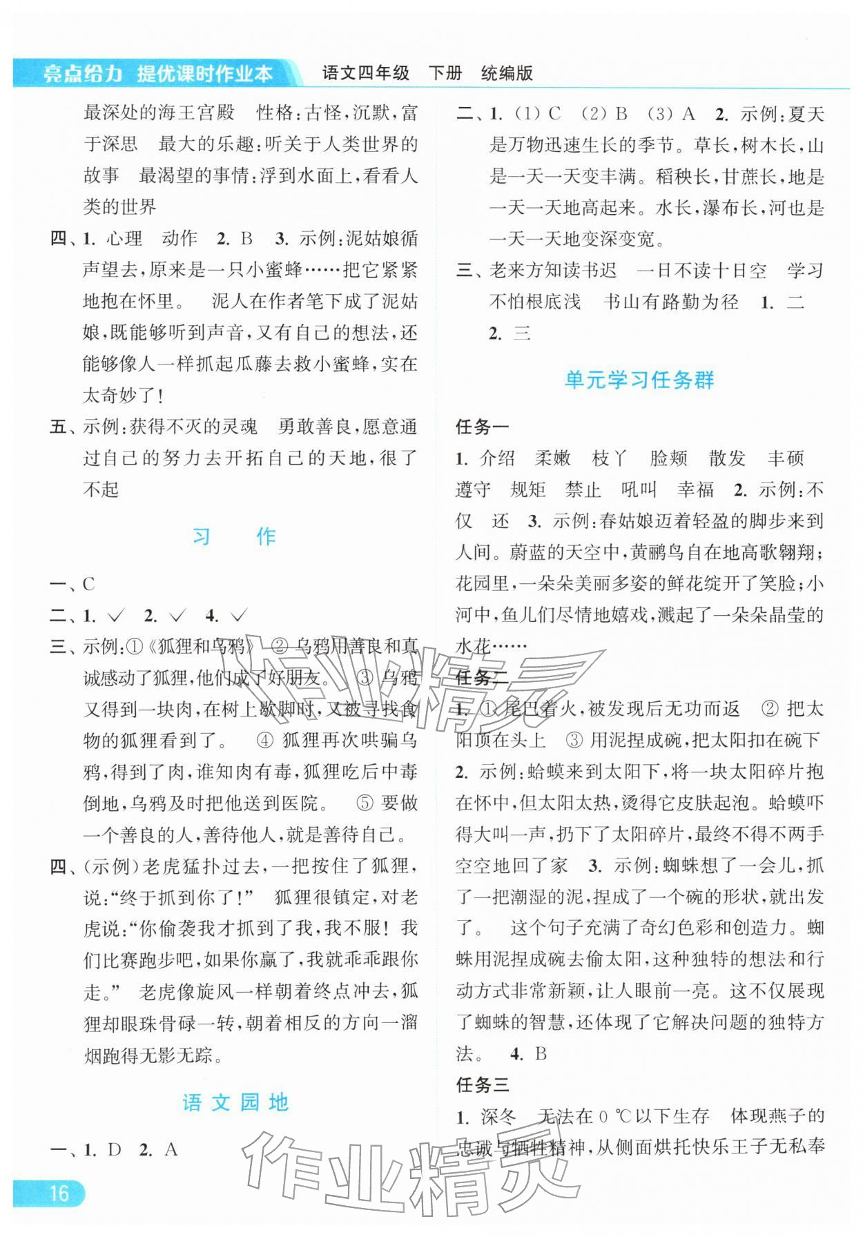 2026年亮点给力提优课时作业本四年级语文下册统编版参考答案第16页