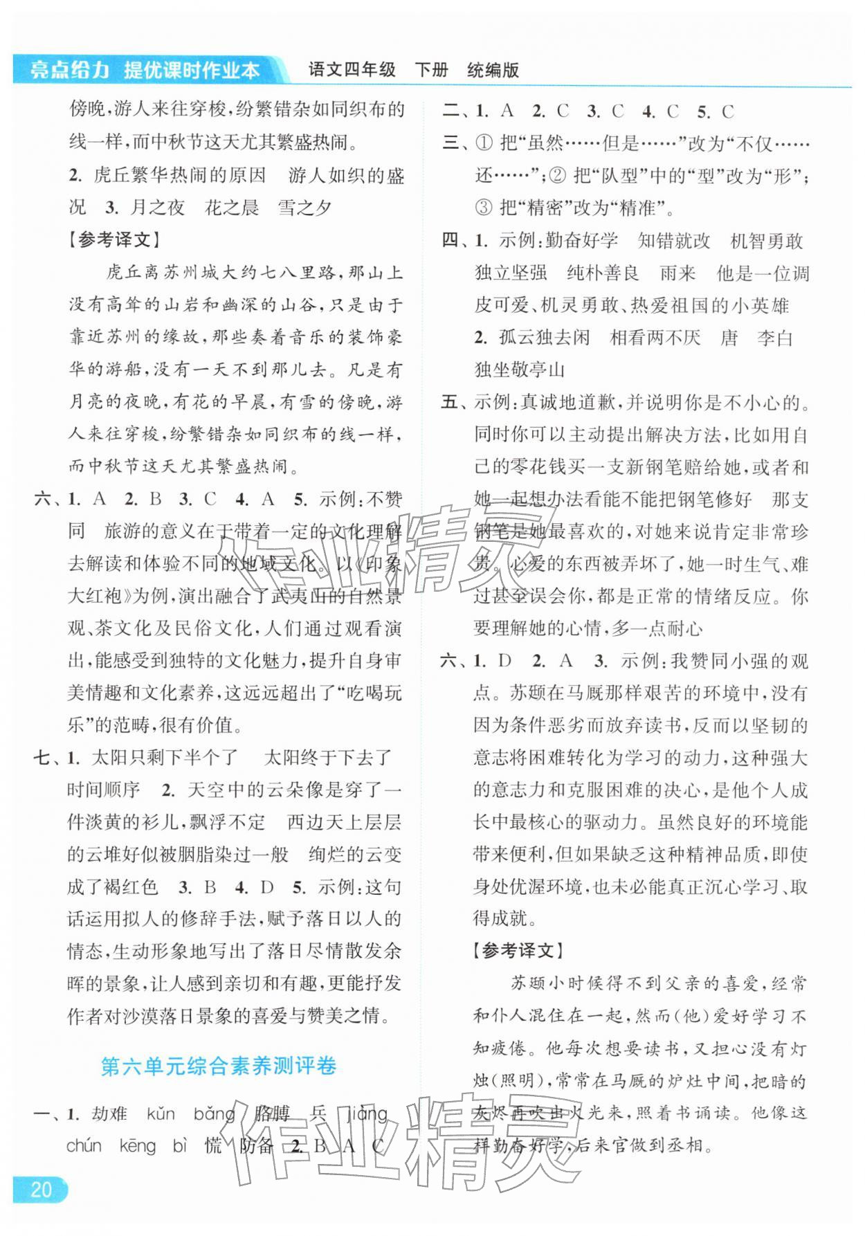 2026年亮点给力提优课时作业本四年级语文下册统编版参考答案第20页