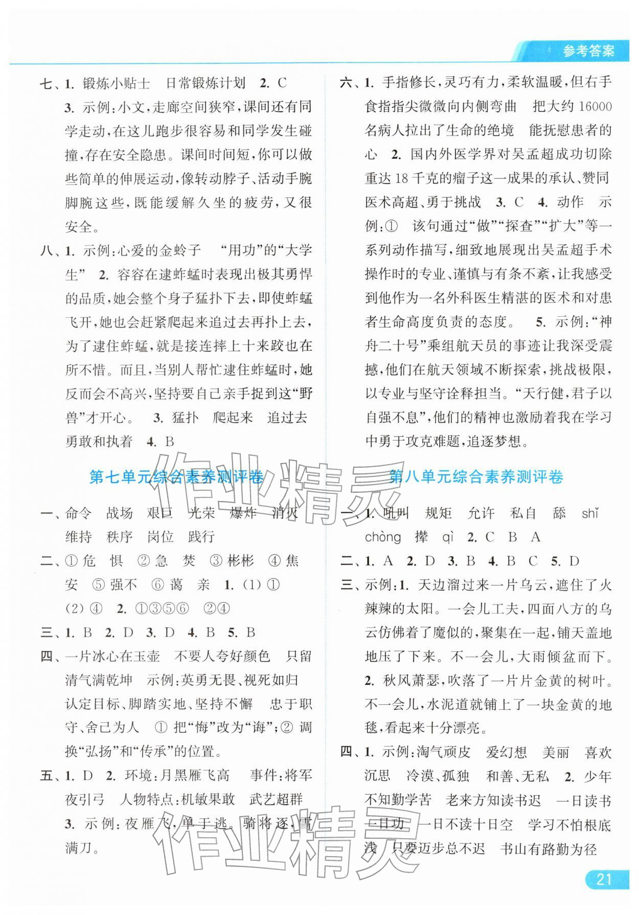 2026年亮点给力提优课时作业本四年级语文下册统编版参考答案第21页