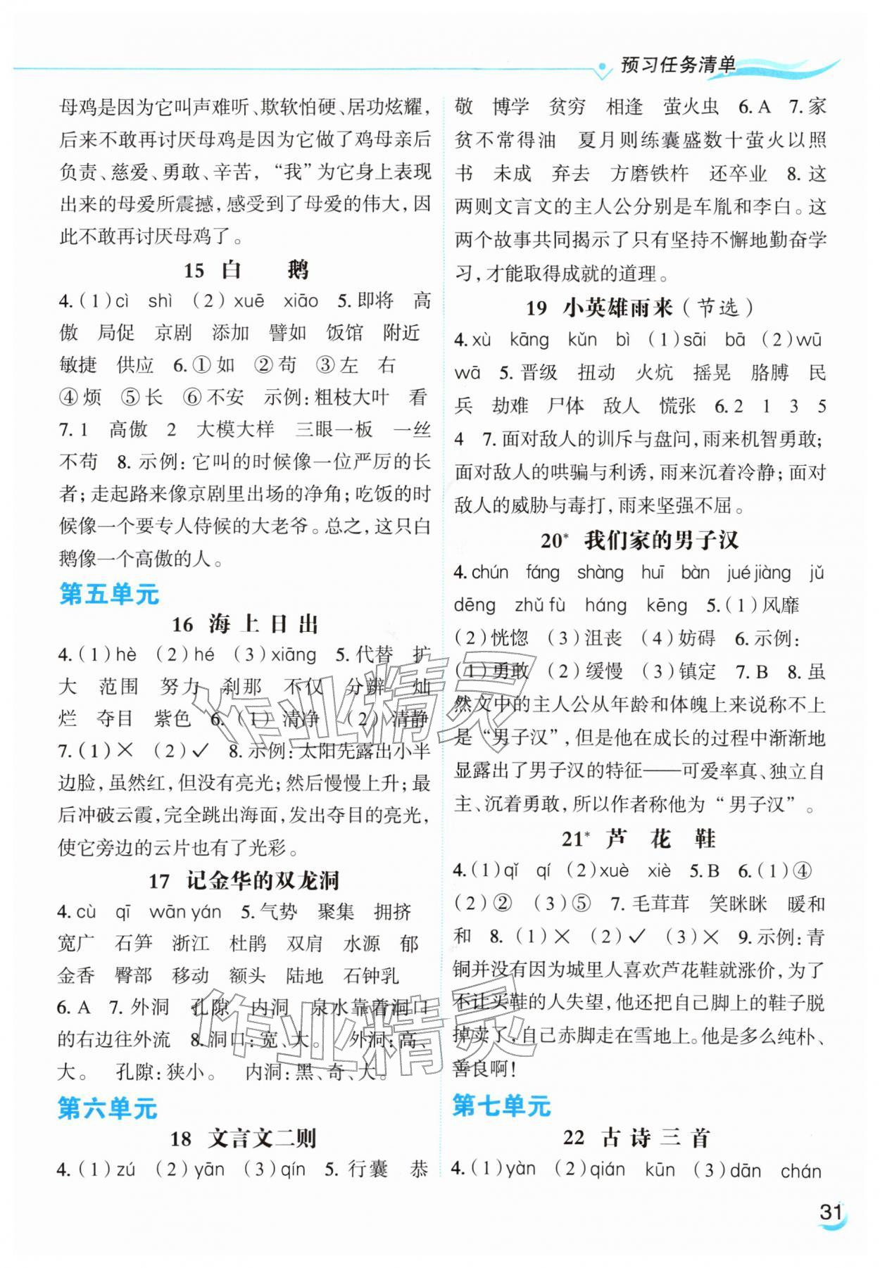 2026年亮点给力提优课时作业本四年级语文下册统编版参考答案第25页