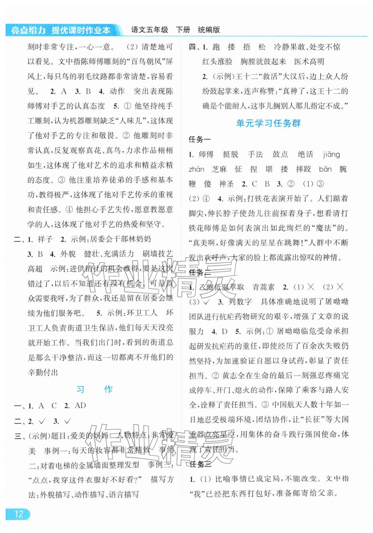 2026年亮点给力提优课时作业本五年级语文下册统编版参考答案第12页