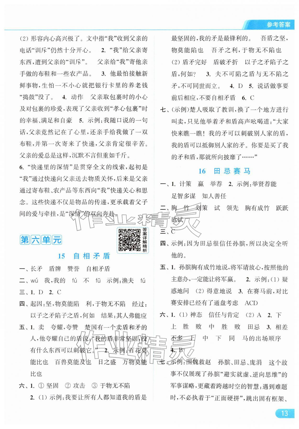 2026年亮点给力提优课时作业本五年级语文下册统编版参考答案第13页
