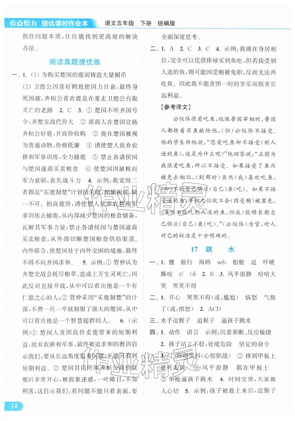 2026年亮点给力提优课时作业本五年级语文下册统编版参考答案第14页