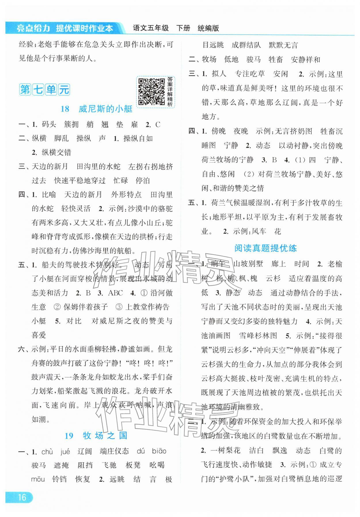 2026年亮点给力提优课时作业本五年级语文下册统编版参考答案第16页