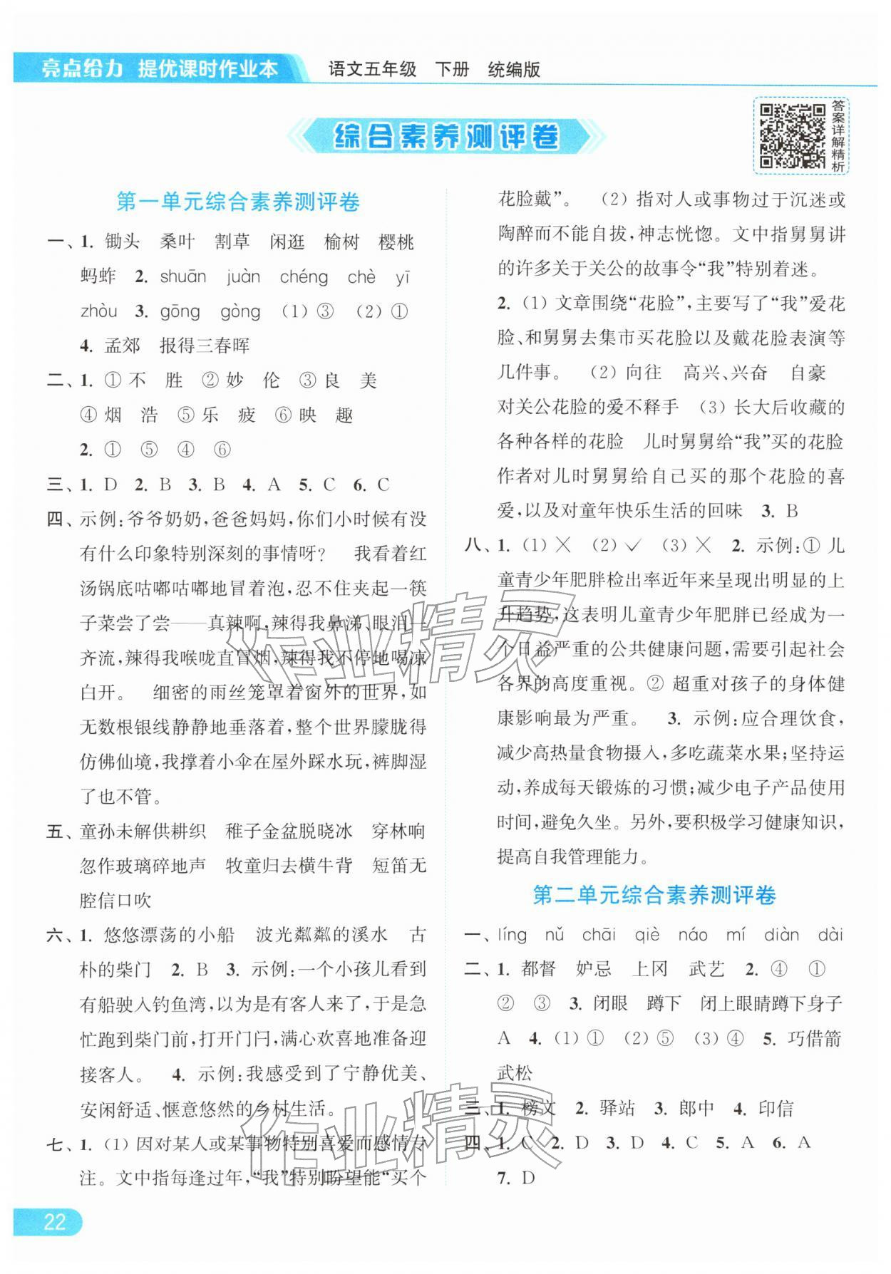 2026年亮点给力提优课时作业本五年级语文下册统编版参考答案第22页