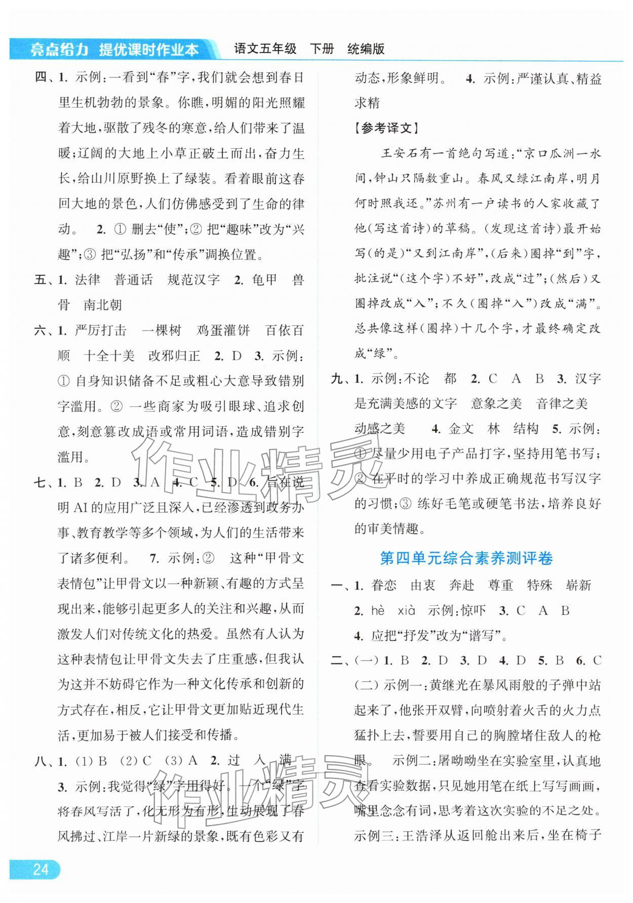 2026年亮点给力提优课时作业本五年级语文下册统编版参考答案第24页