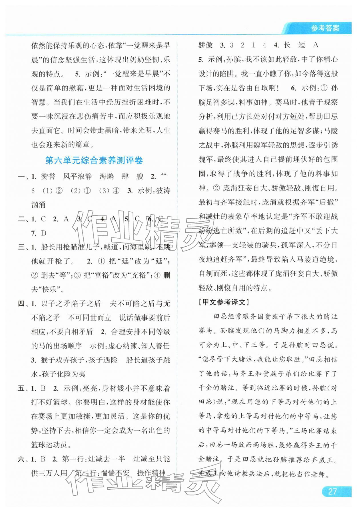 2026年亮点给力提优课时作业本五年级语文下册统编版参考答案第27页