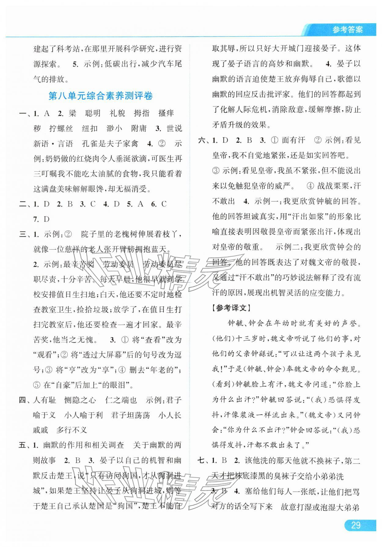 2026年亮点给力提优课时作业本五年级语文下册统编版参考答案第29页