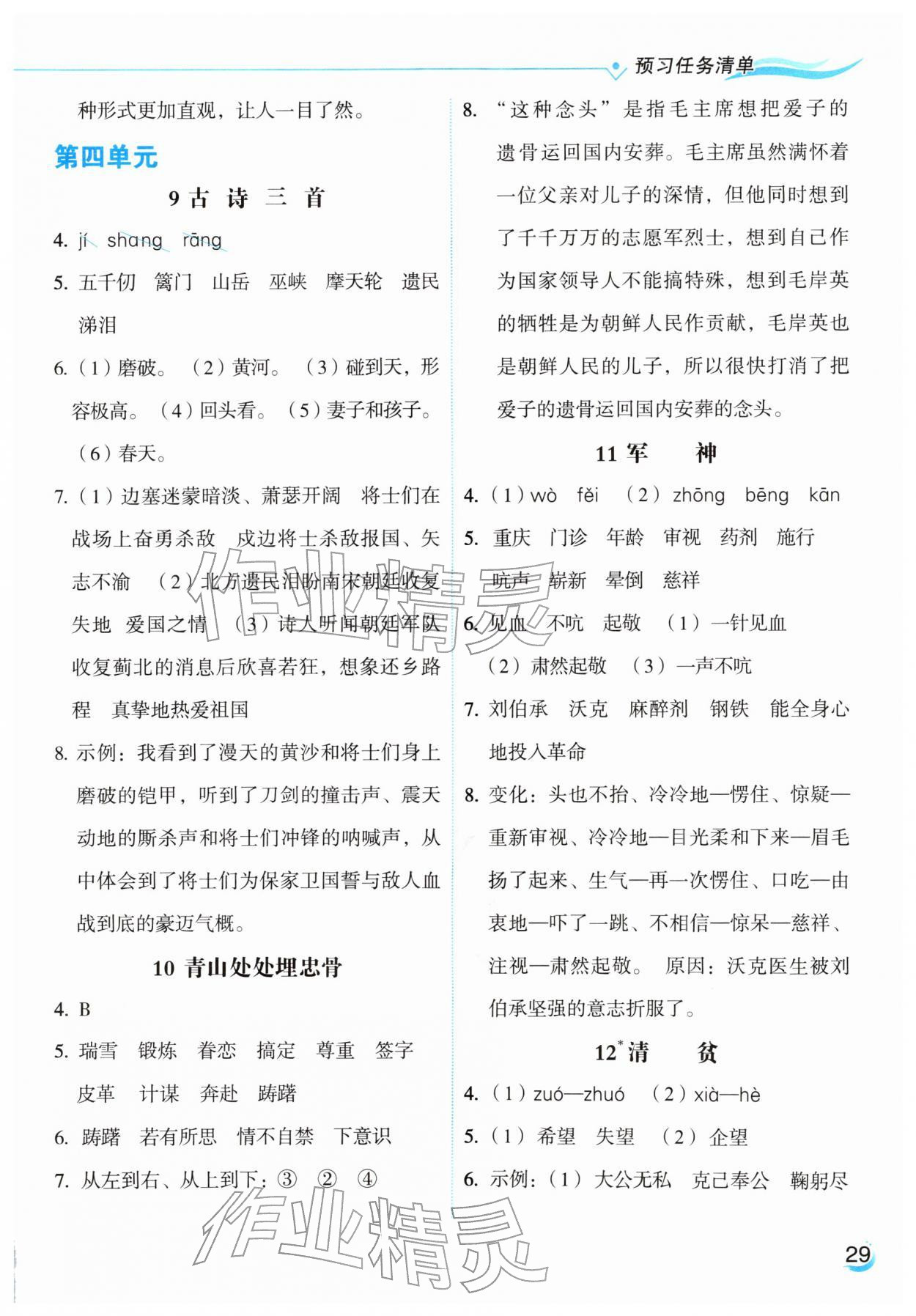 2026年亮点给力提优课时作业本五年级语文下册统编版参考答案第34页