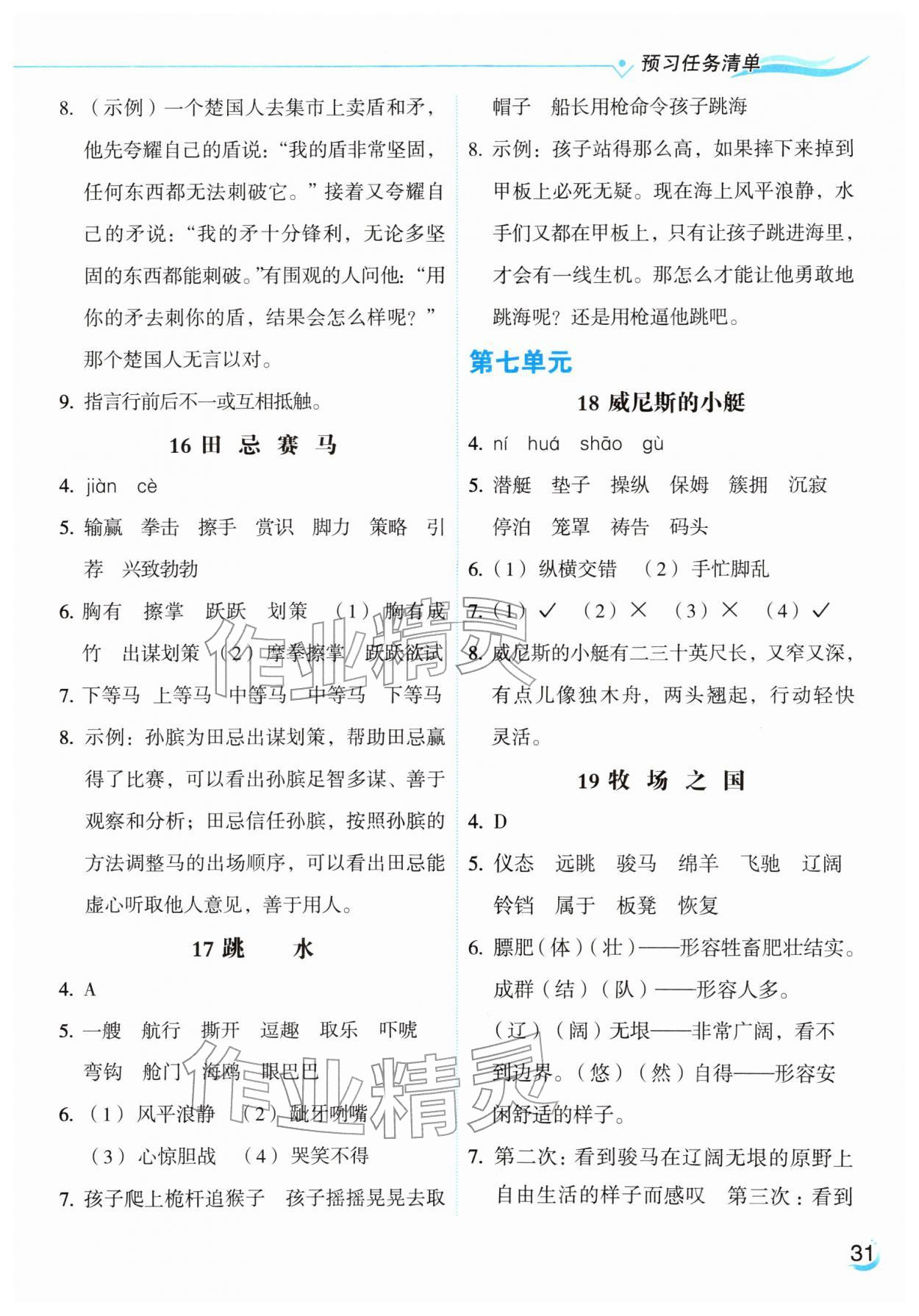 2026年亮点给力提优课时作业本五年级语文下册统编版参考答案第36页