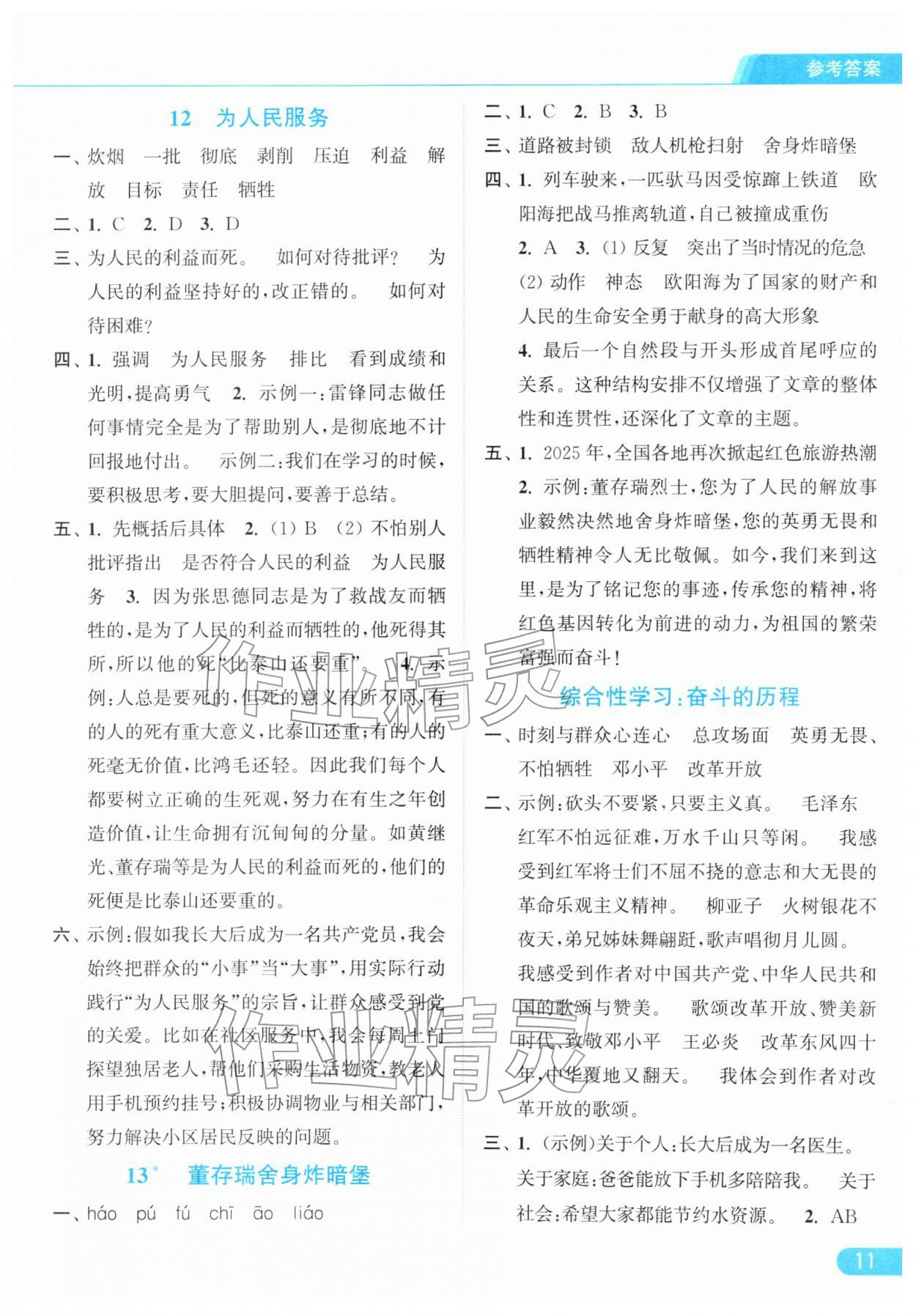 2026年亮点给力提优课时作业本六年级语文下册统编版参考答案第11页