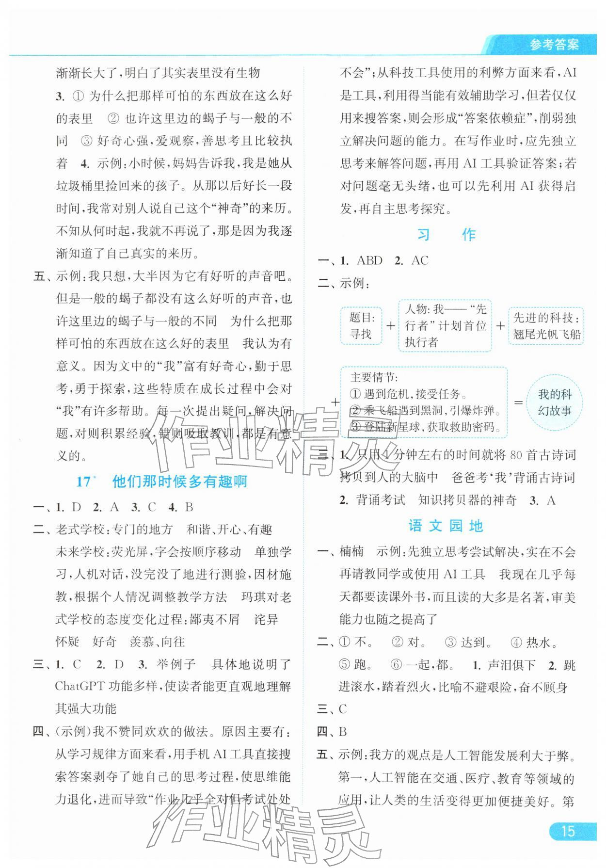 2026年亮点给力提优课时作业本六年级语文下册统编版参考答案第15页