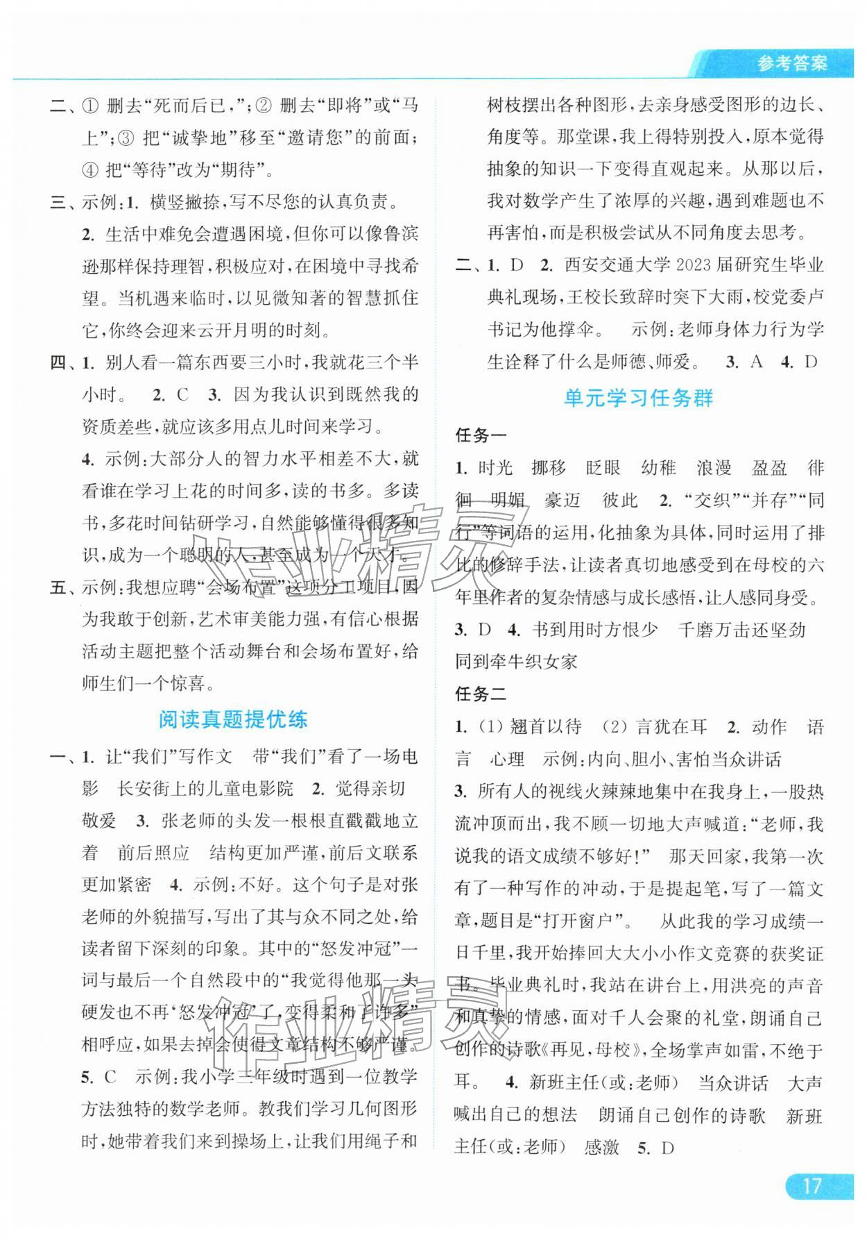 2026年亮点给力提优课时作业本六年级语文下册统编版参考答案第17页