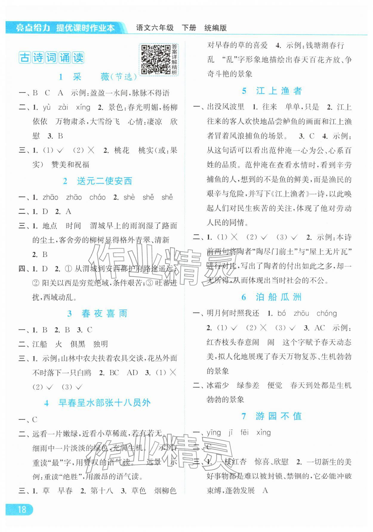 2026年亮点给力提优课时作业本六年级语文下册统编版参考答案第18页