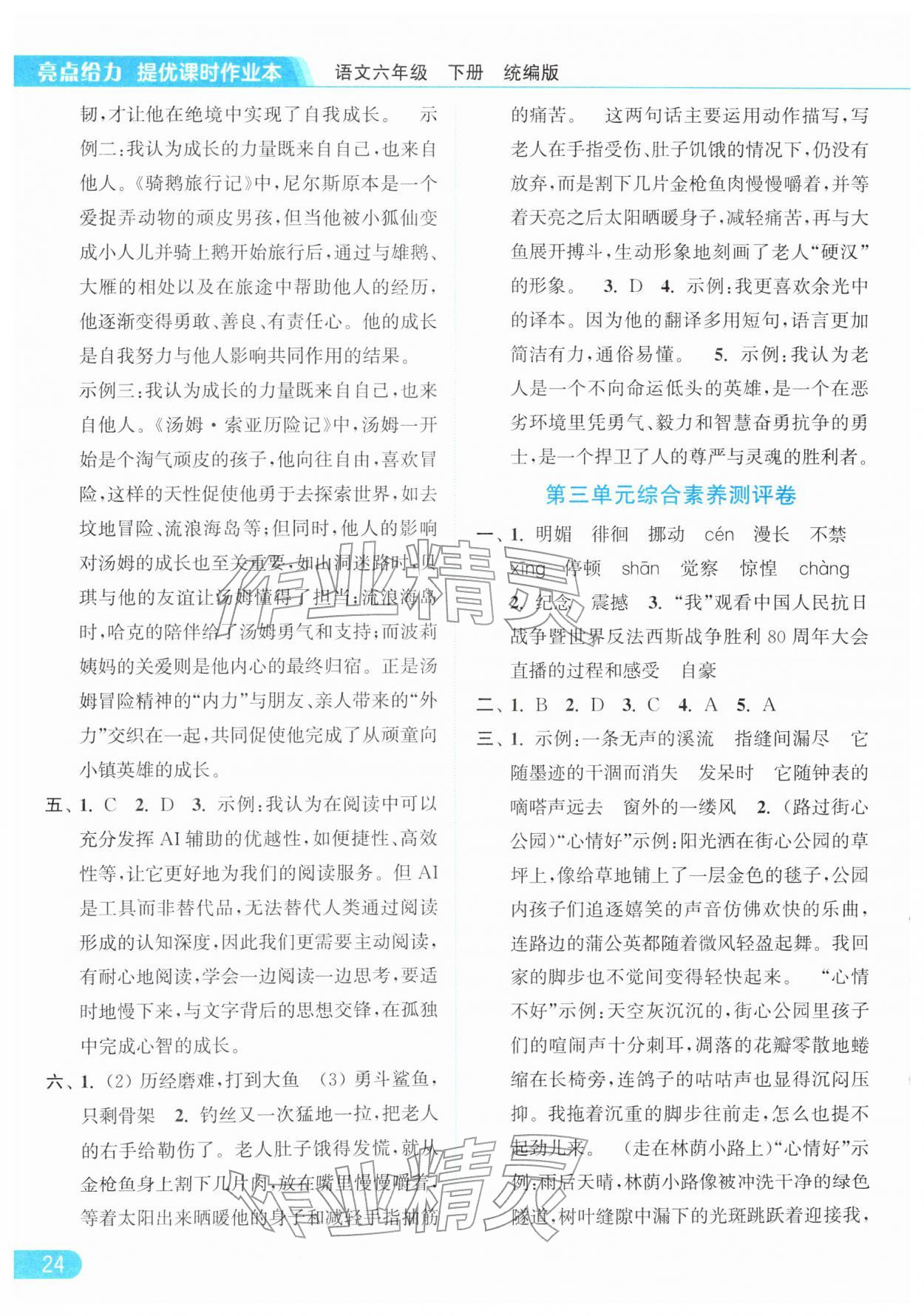 2026年亮点给力提优课时作业本六年级语文下册统编版参考答案第24页
