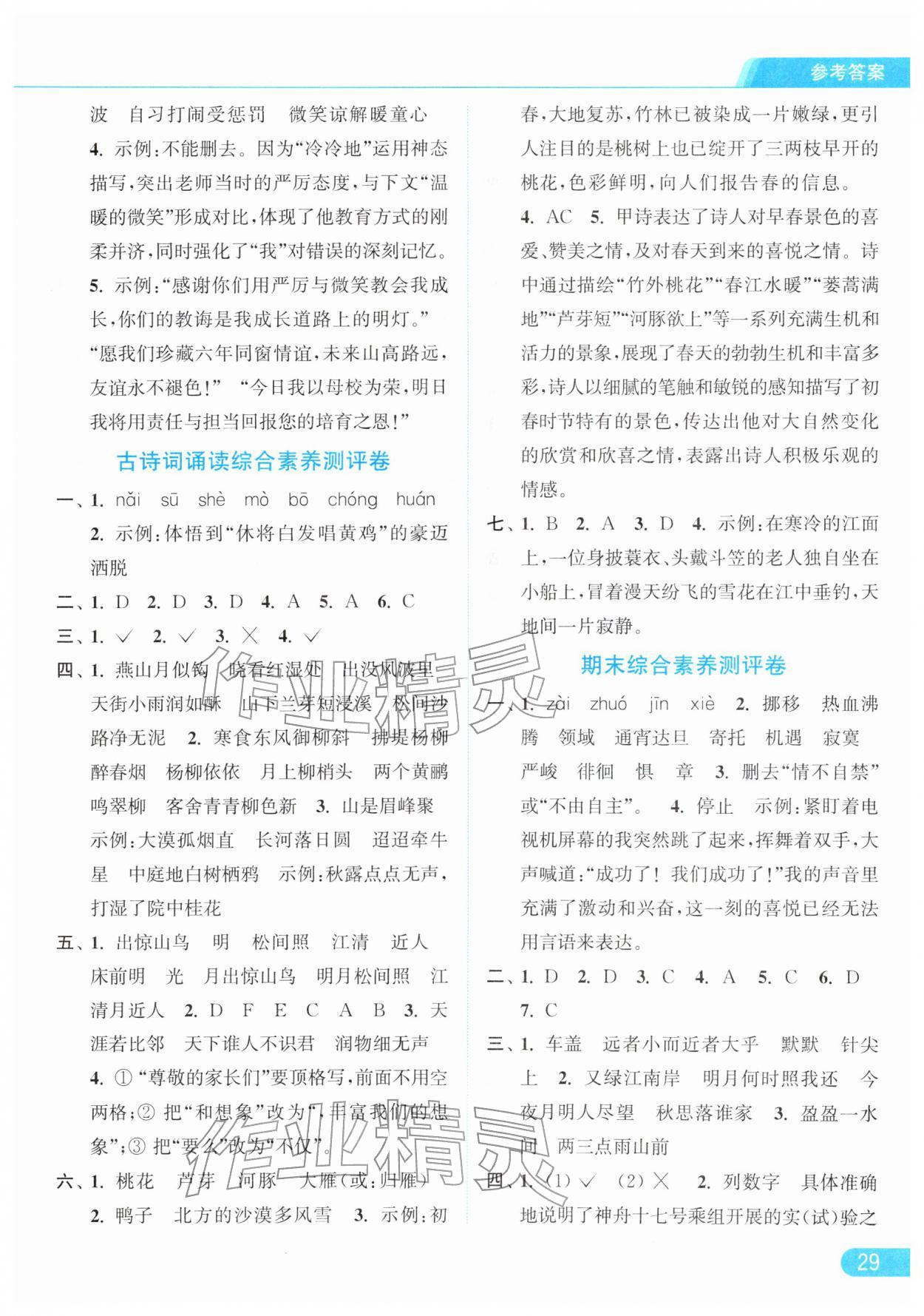 2026年亮点给力提优课时作业本六年级语文下册统编版参考答案第29页