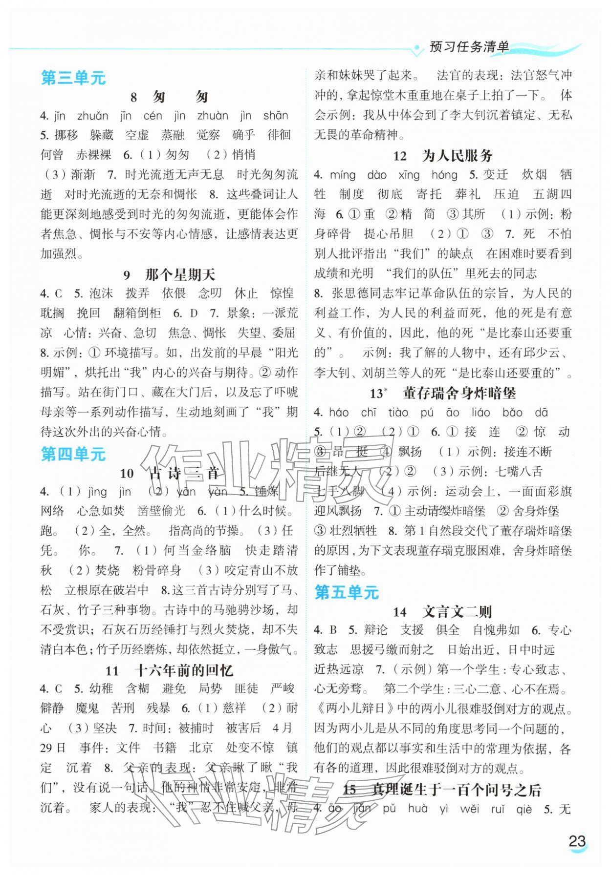 2026年亮点给力提优课时作业本六年级语文下册统编版参考答案第32页