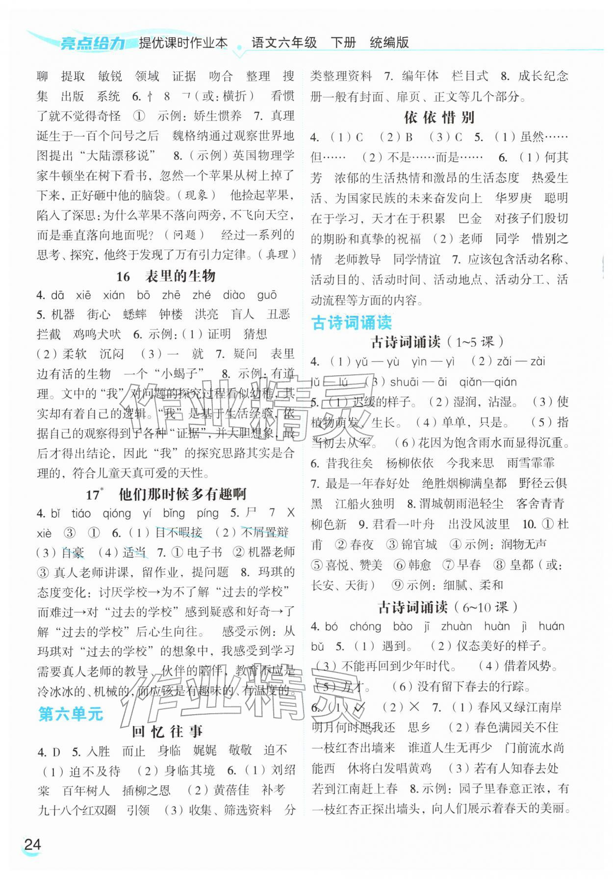 2026年亮点给力提优课时作业本六年级语文下册统编版参考答案第33页