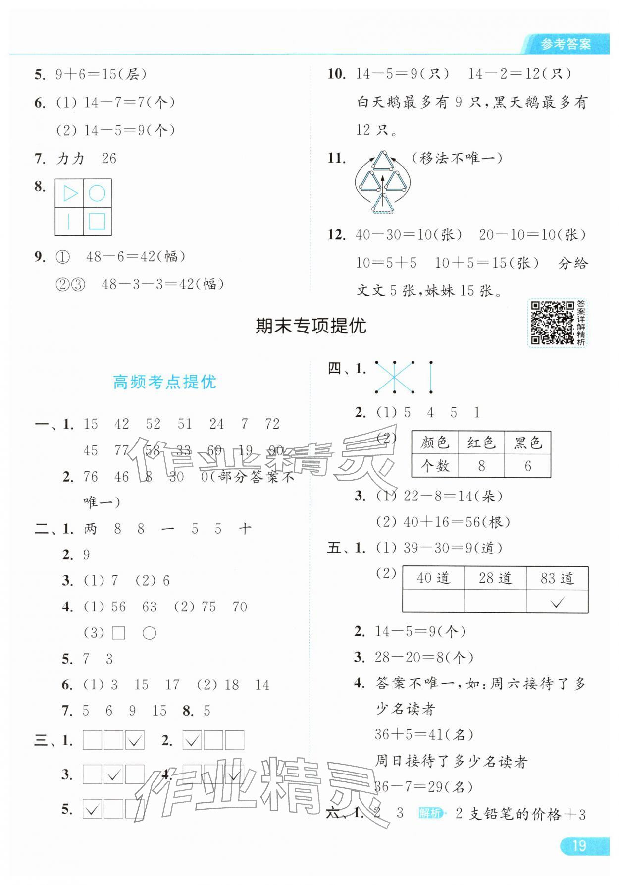 2026年亮点给力提优课时作业本一年级数学下册江苏版参考答案第19页