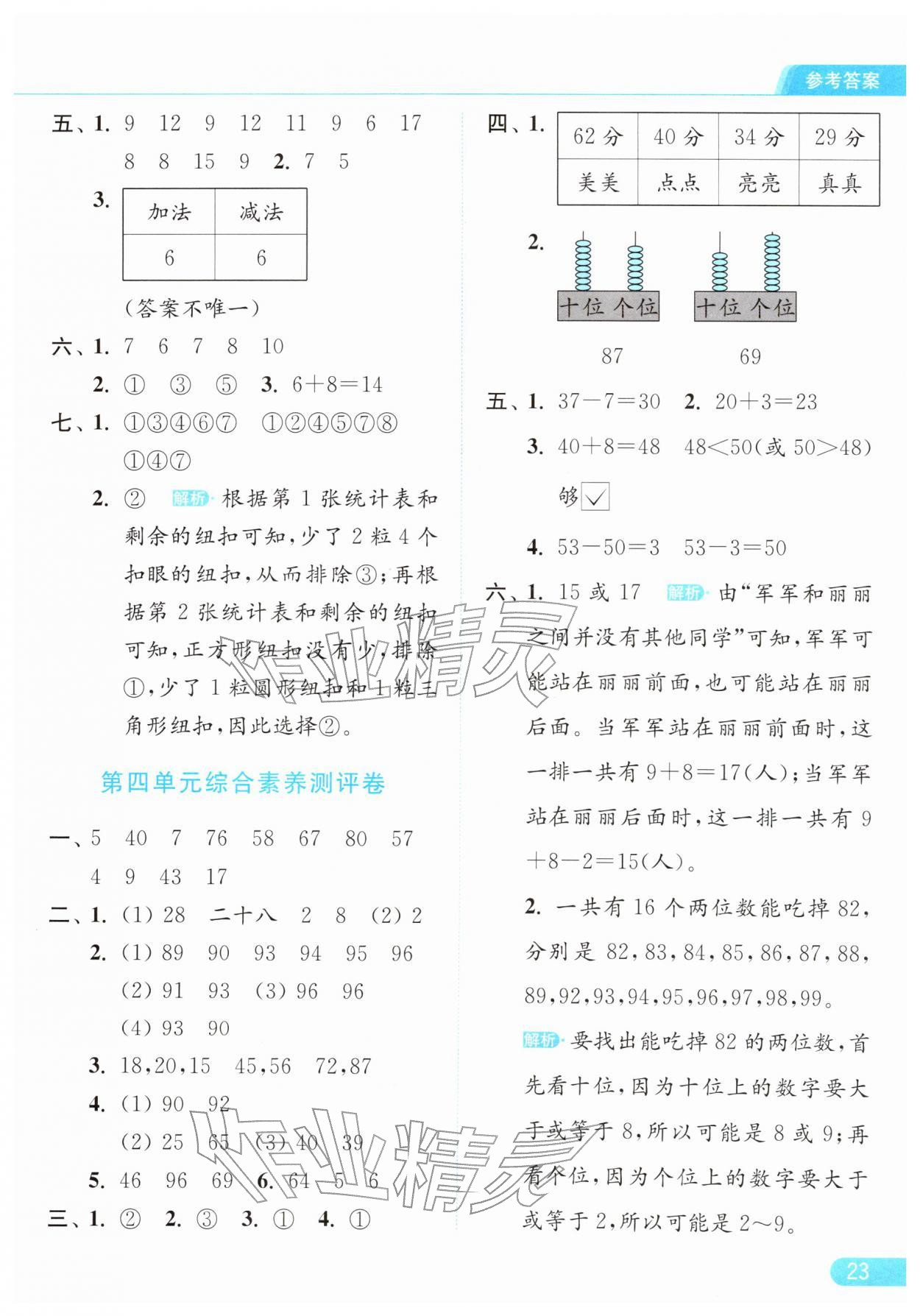 2026年亮点给力提优课时作业本一年级数学下册江苏版参考答案第23页