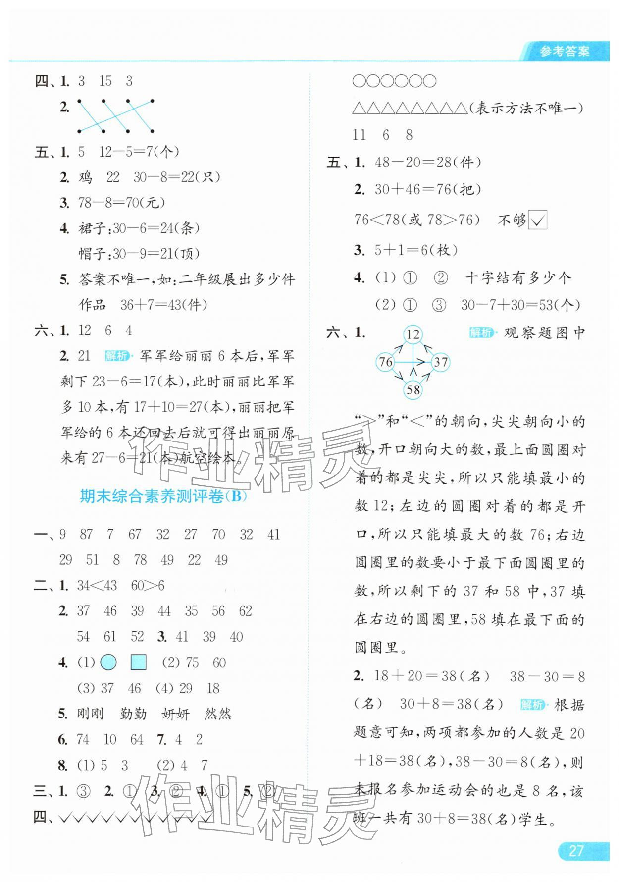 2026年亮点给力提优课时作业本一年级数学下册江苏版参考答案第27页