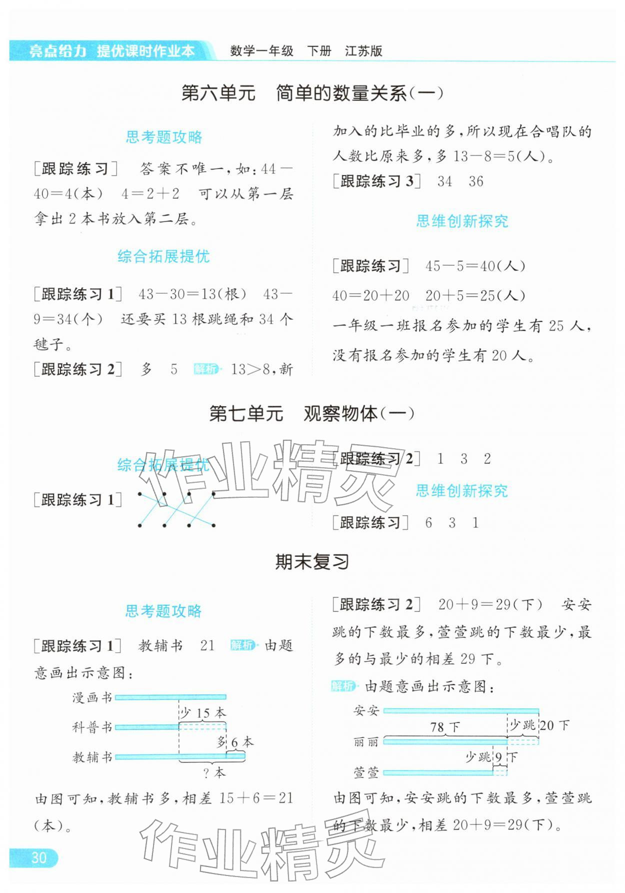 2026年亮点给力提优课时作业本一年级数学下册江苏版参考答案第30页