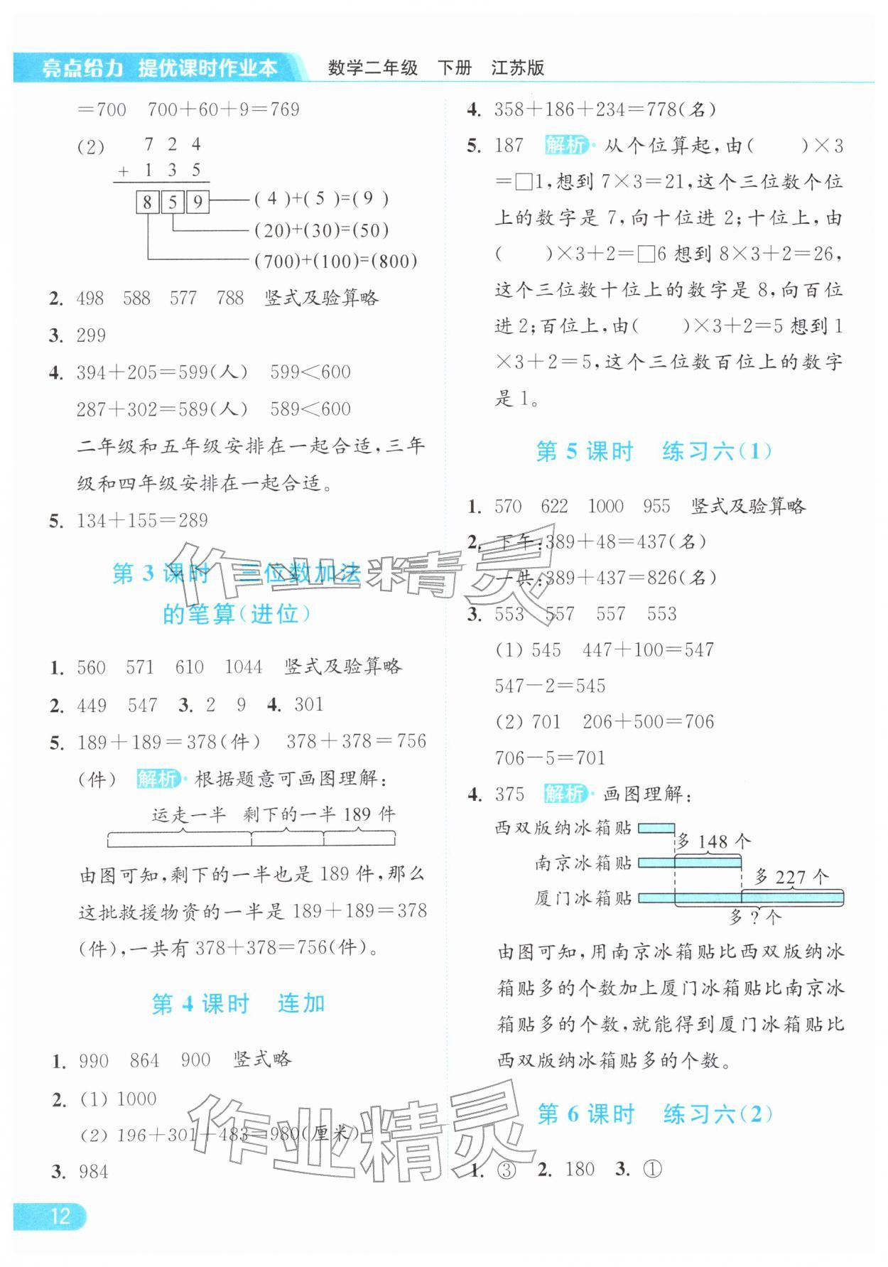 2026年亮点给力提优课时作业本二年级数学下册江苏版参考答案第12页