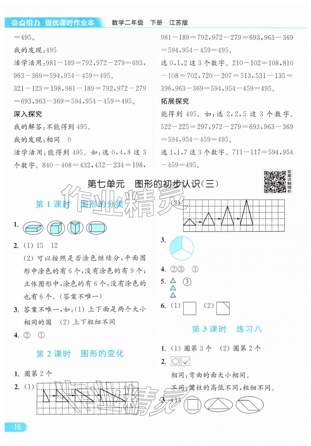 2026年亮点给力提优课时作业本二年级数学下册江苏版参考答案第16页
