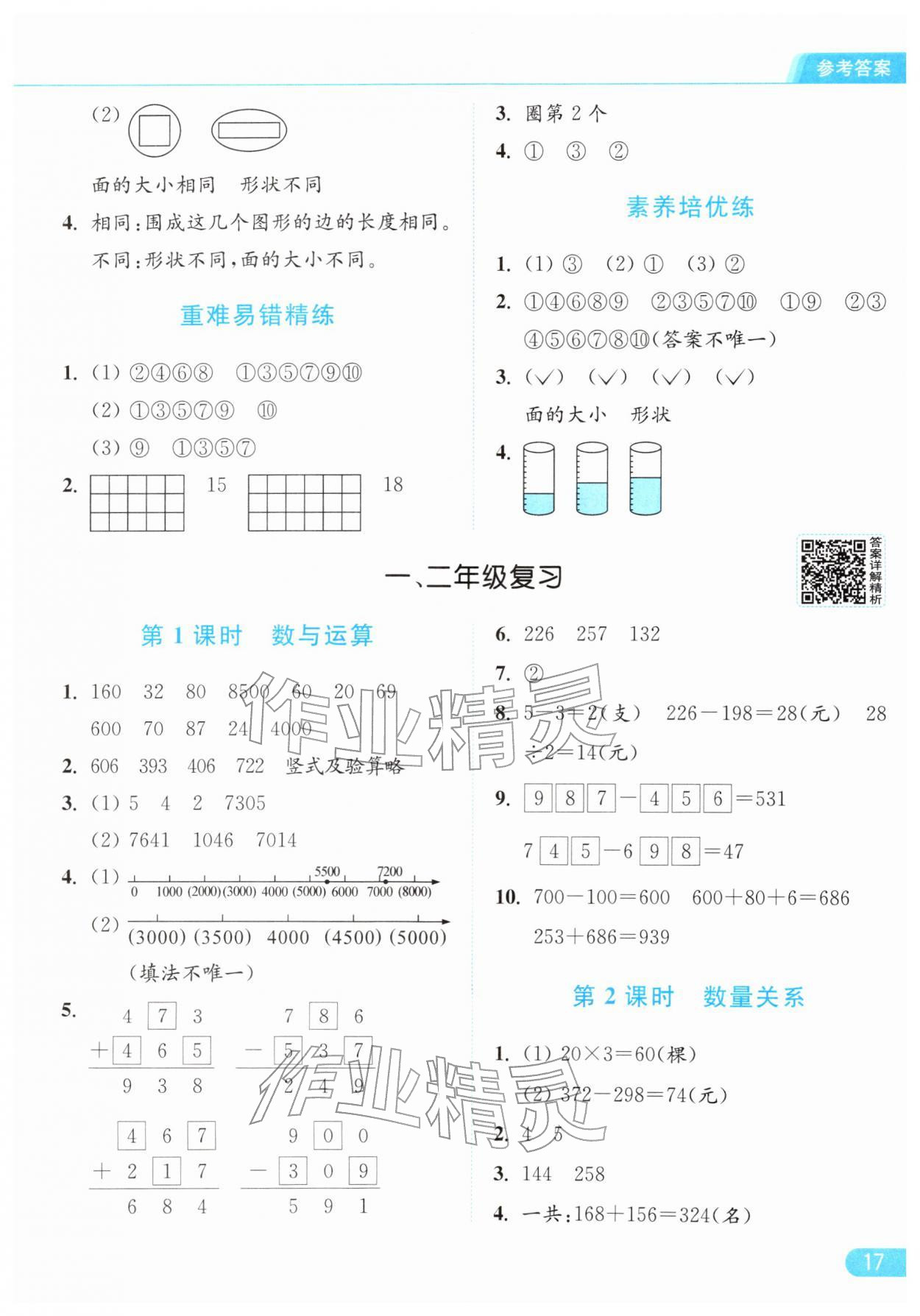 2026年亮点给力提优课时作业本二年级数学下册江苏版参考答案第17页