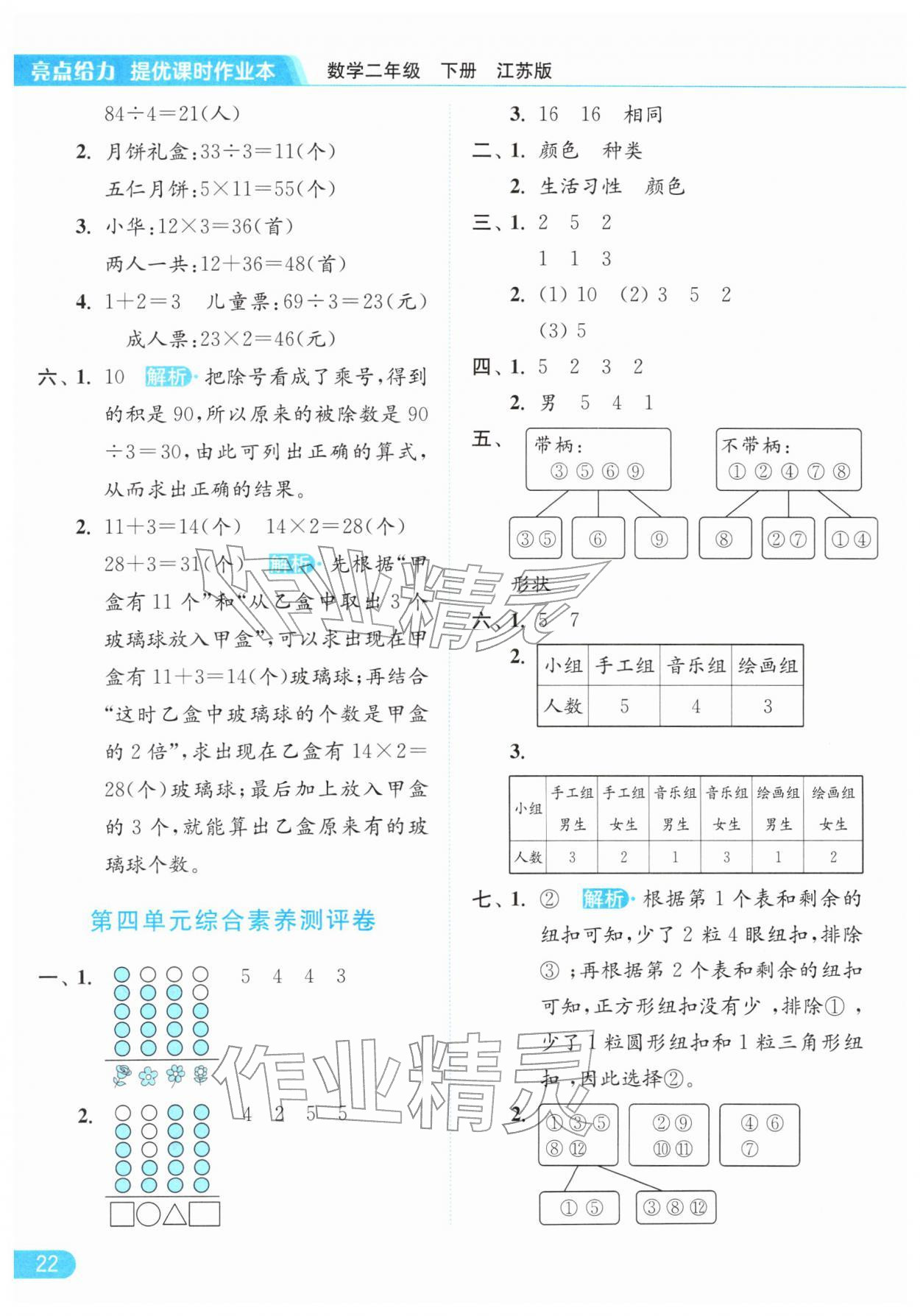 2026年亮点给力提优课时作业本二年级数学下册江苏版参考答案第22页