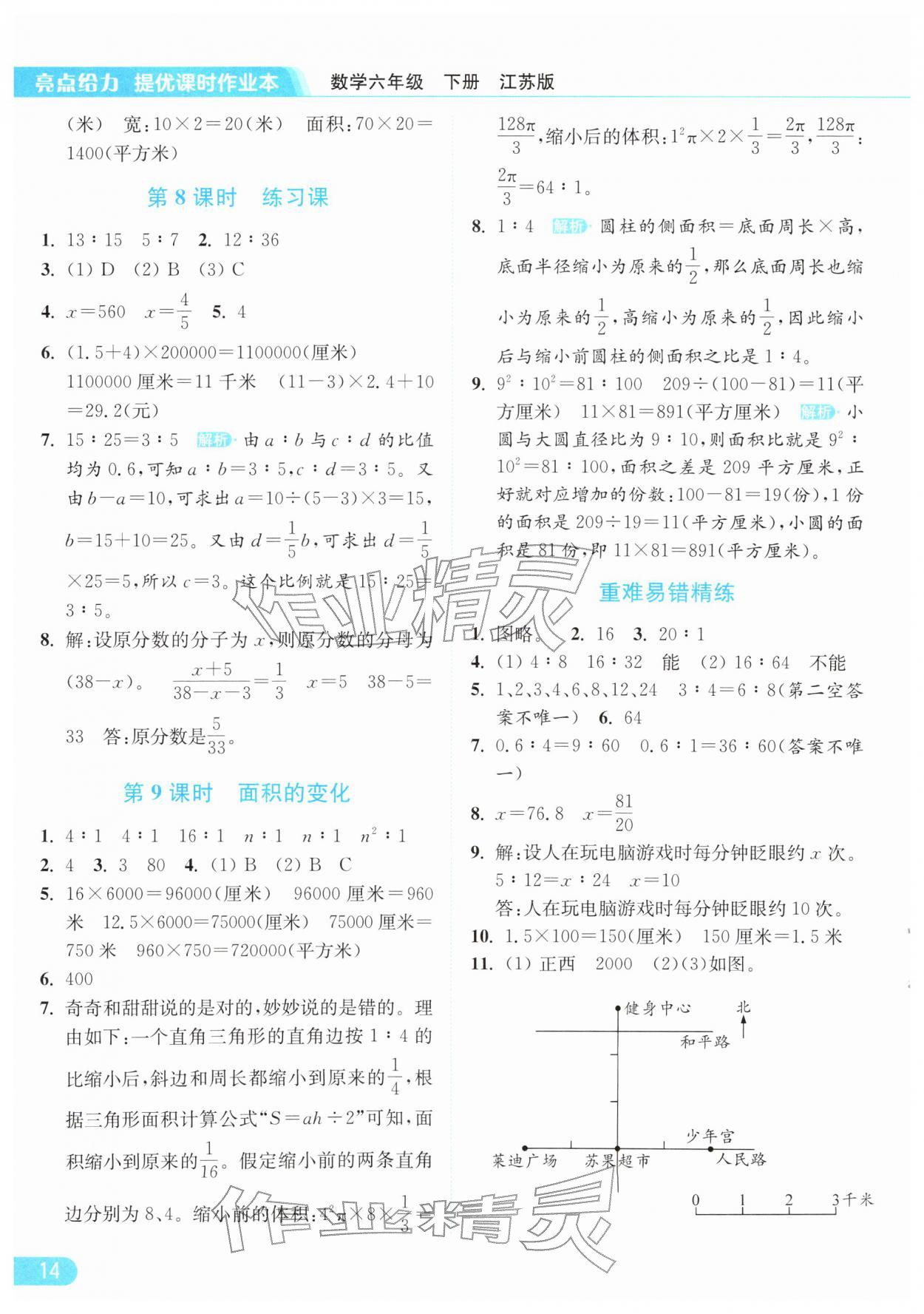 2026年亮点给力提优课时作业本六年级数学下册江苏版参考答案第14页