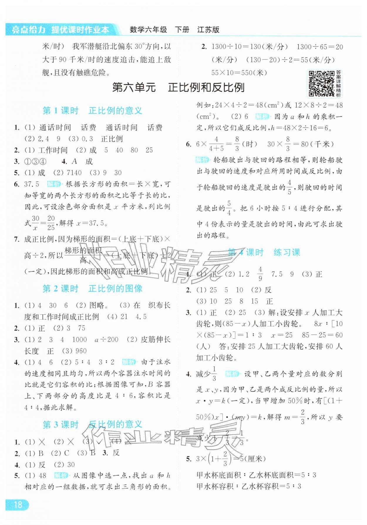 2026年亮点给力提优课时作业本六年级数学下册江苏版参考答案第18页