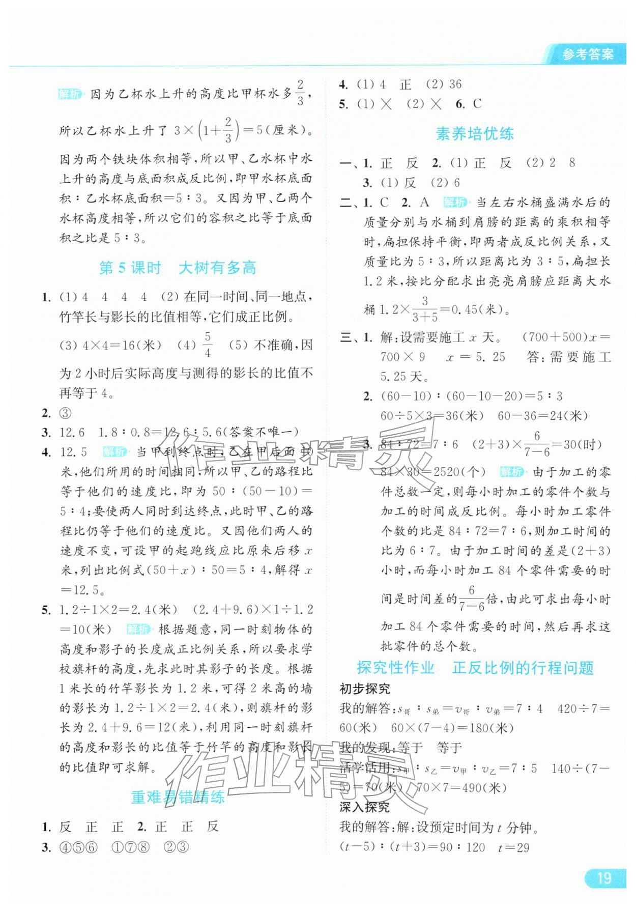 2026年亮点给力提优课时作业本六年级数学下册江苏版参考答案第19页