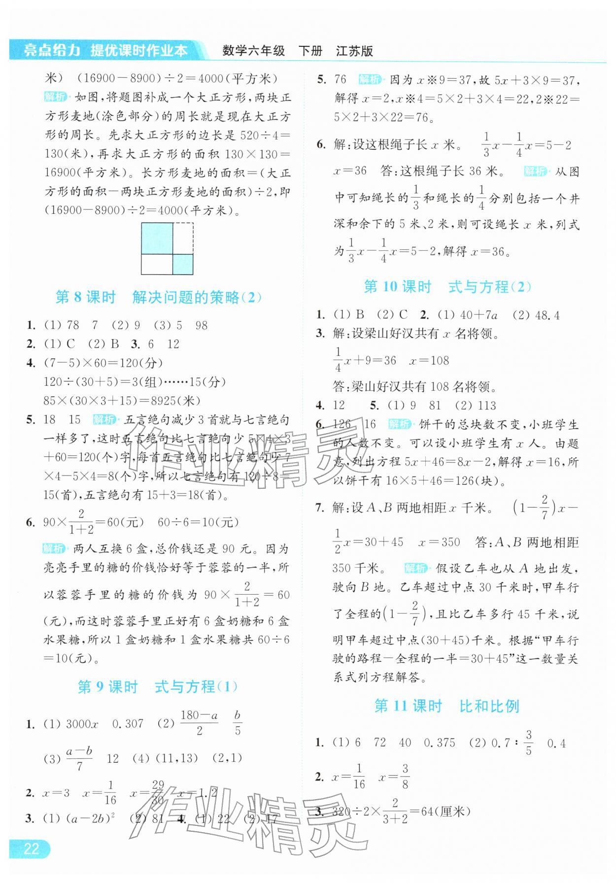 2026年亮点给力提优课时作业本六年级数学下册江苏版参考答案第22页