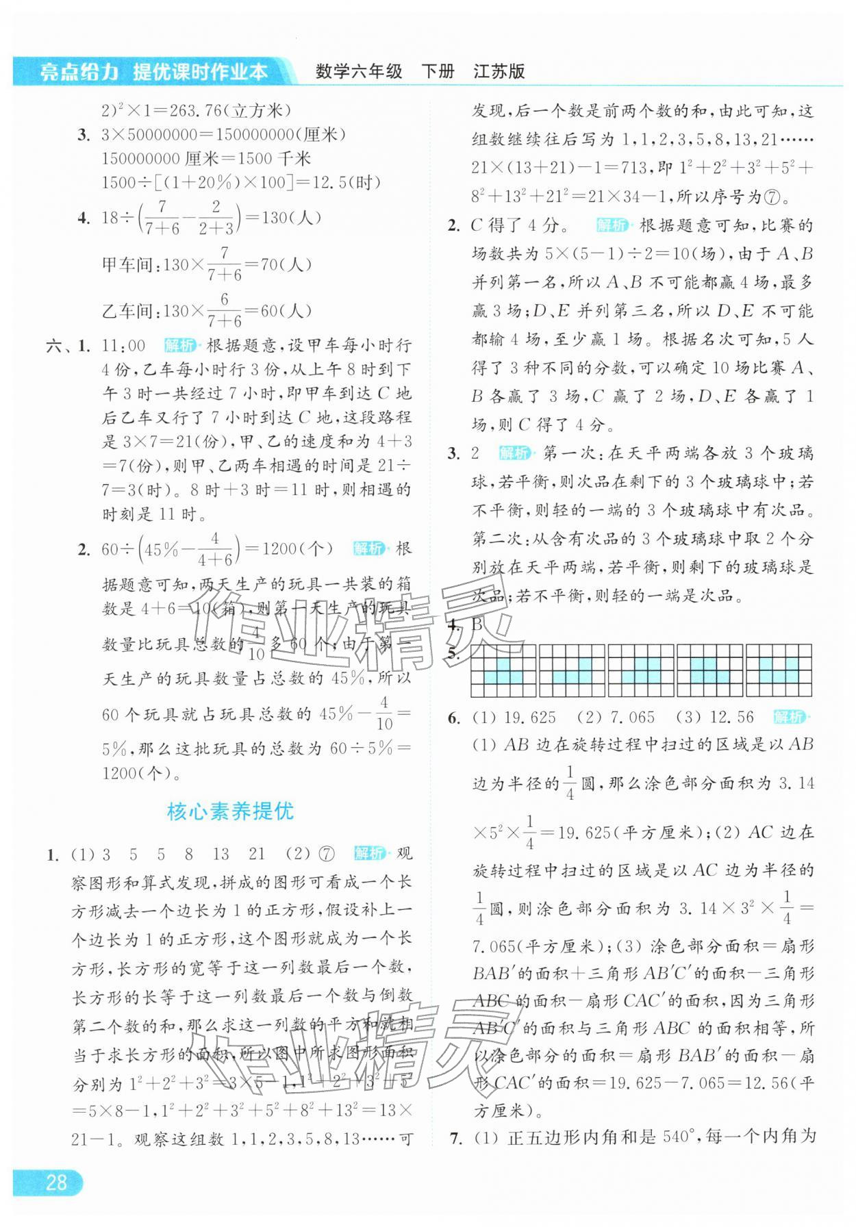 2026年亮点给力提优课时作业本六年级数学下册江苏版参考答案第28页