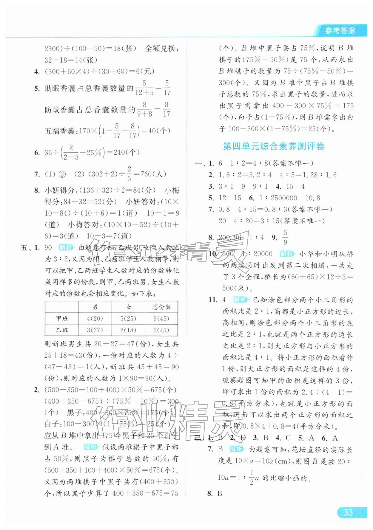 2026年亮点给力提优课时作业本六年级数学下册江苏版参考答案第33页