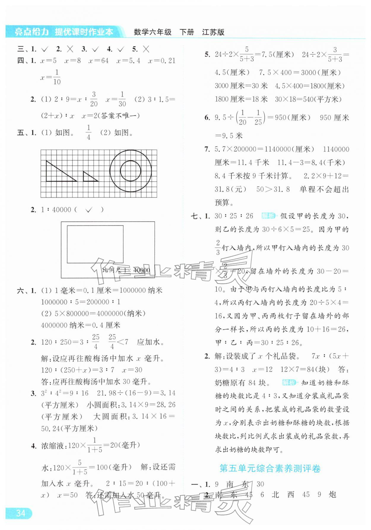 2026年亮点给力提优课时作业本六年级数学下册江苏版参考答案第34页