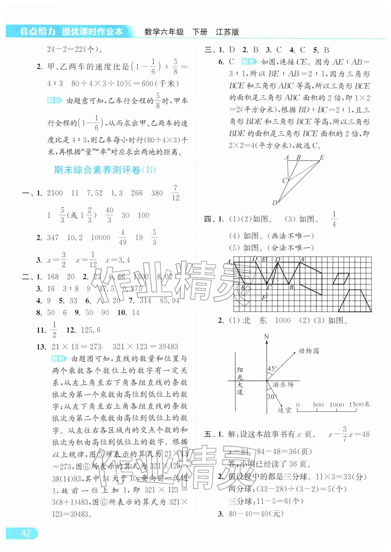 2026年亮点给力提优课时作业本六年级数学下册江苏版参考答案第42页
