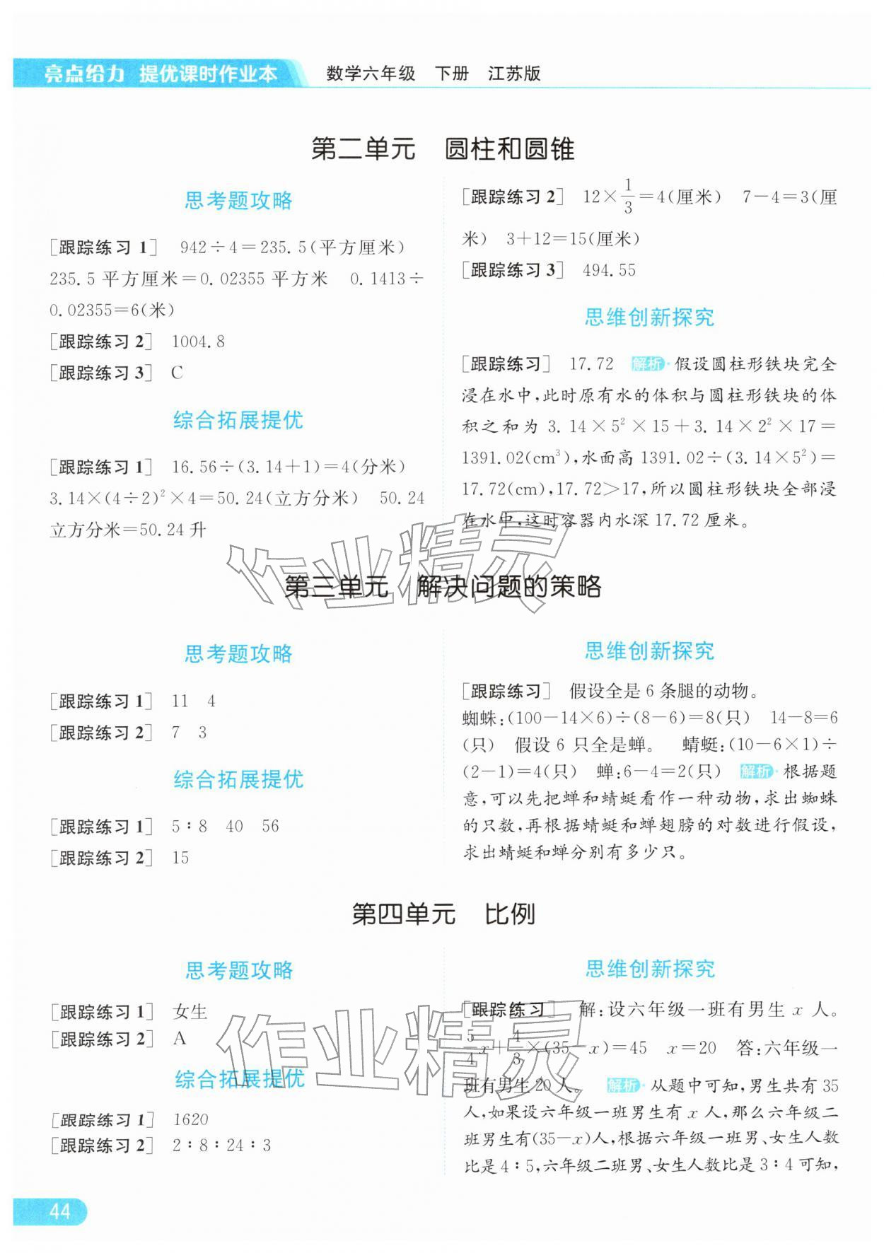 2026年亮点给力提优课时作业本六年级数学下册江苏版参考答案第44页