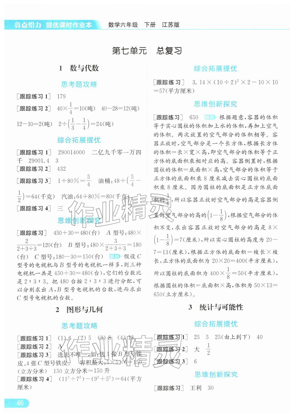 2026年亮点给力提优课时作业本六年级数学下册江苏版参考答案第46页